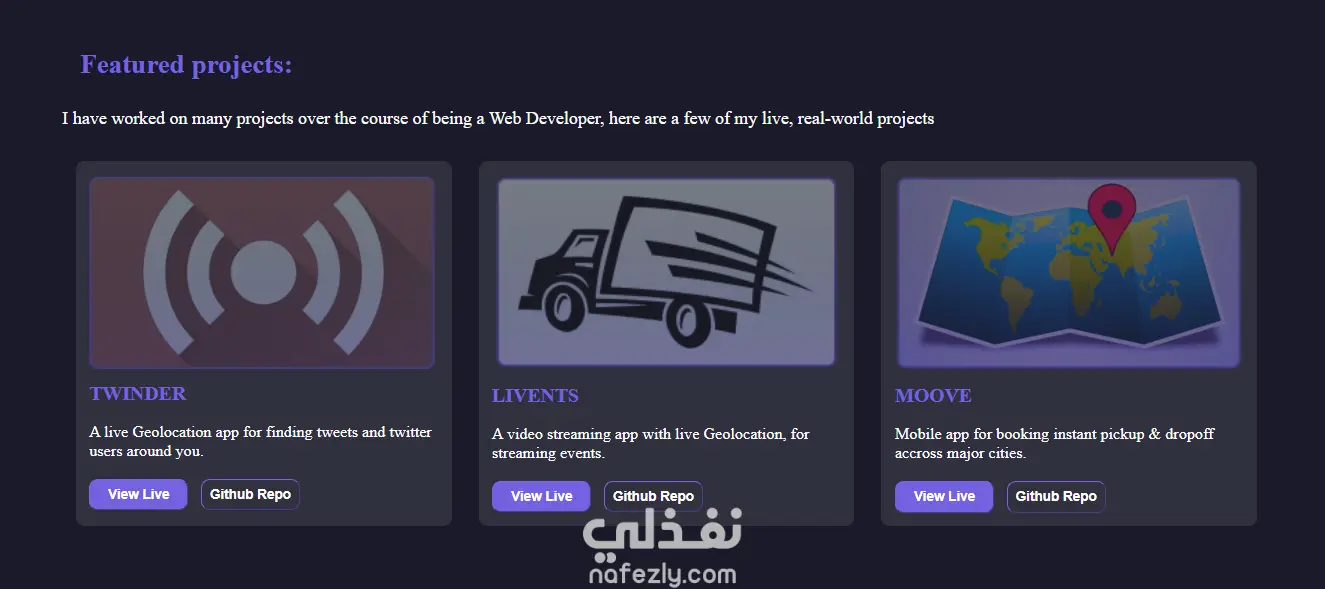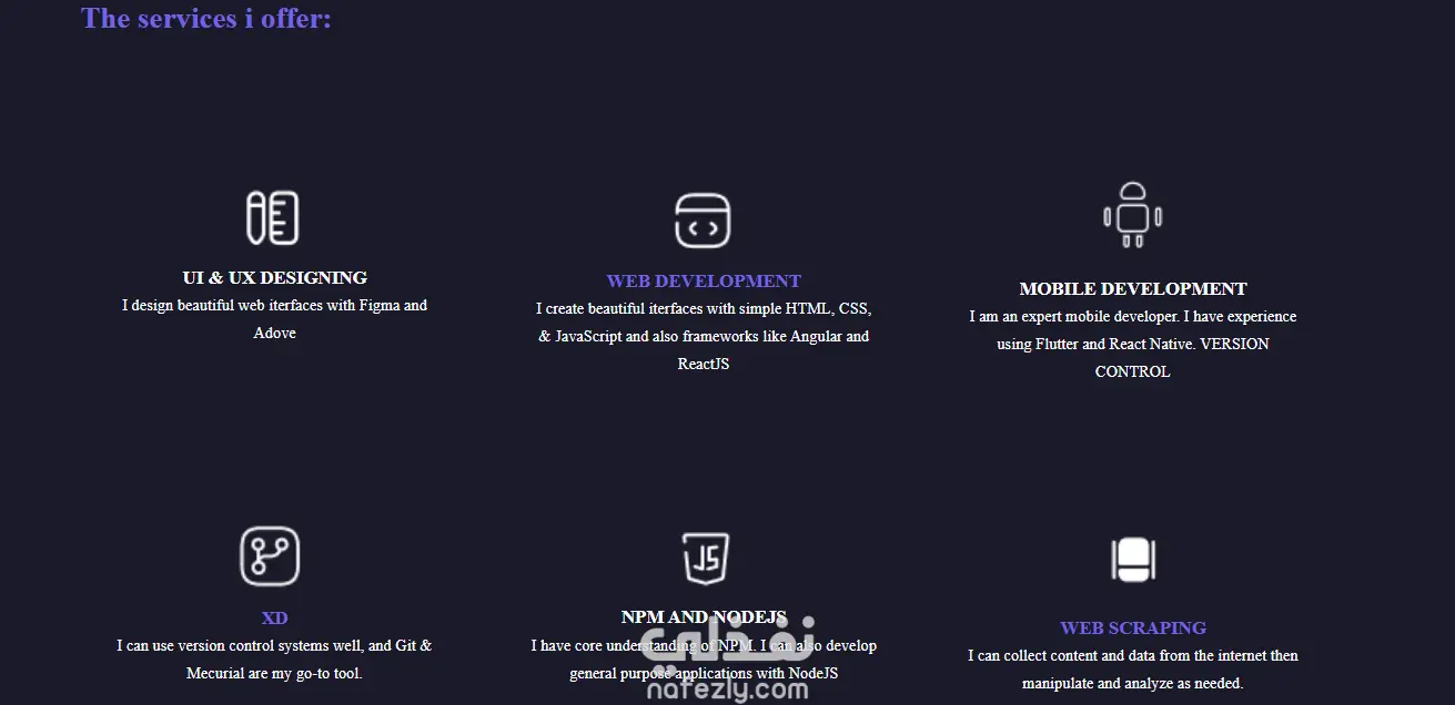 انشاء صفحه ويب بورتفوليو تفاعليه متجاوبه مع جميع الشاشات باستخدام html , css , js و بوتستراب مكونه من 3 اقسام وهيدر وفوتر