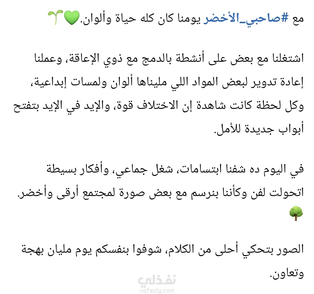 بوست لتوثيق فعاليات حملة لونها بالأخضر مع مشروع أحسن صاحب لدمج ذوي الاعاقة في يوم بعنوان صاحبي الأخضر