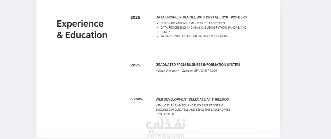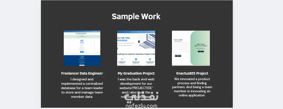 يتم تصميم البورتفوليو بأسلوب حديث ومبتكر يركز على إبراز نقاط قوتك وإنجازاتك، مع اختيار ألوان وخطوط متناسقة وهوية بصرية أنيقة تتناسب مع مجالك.