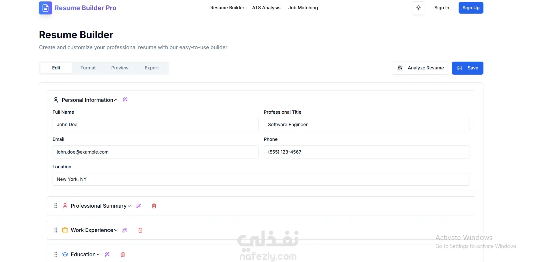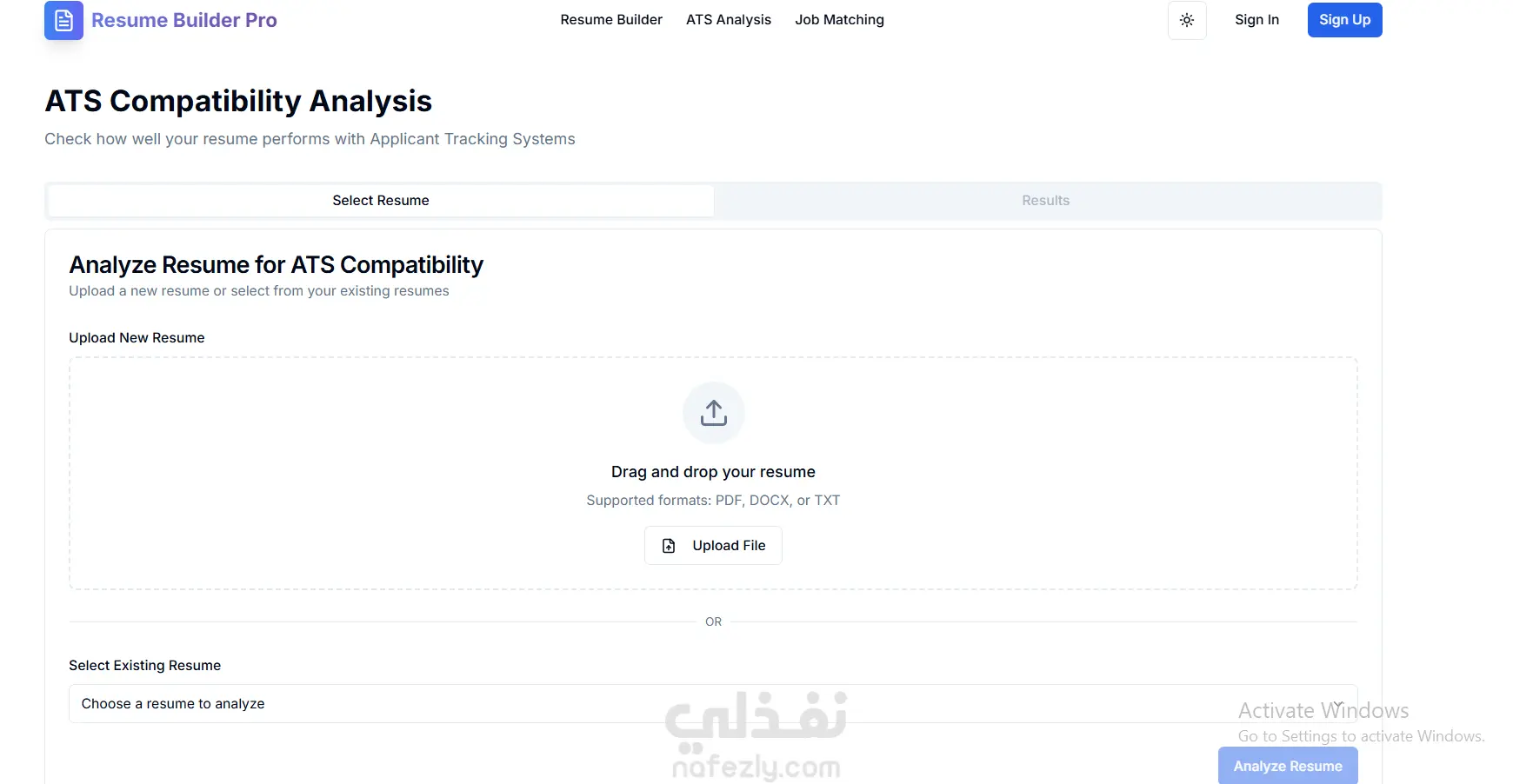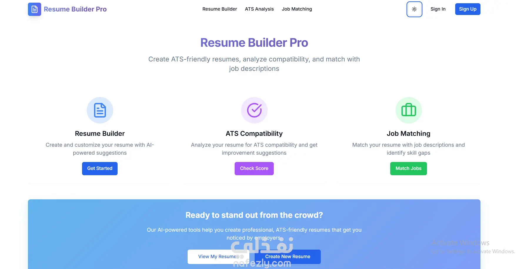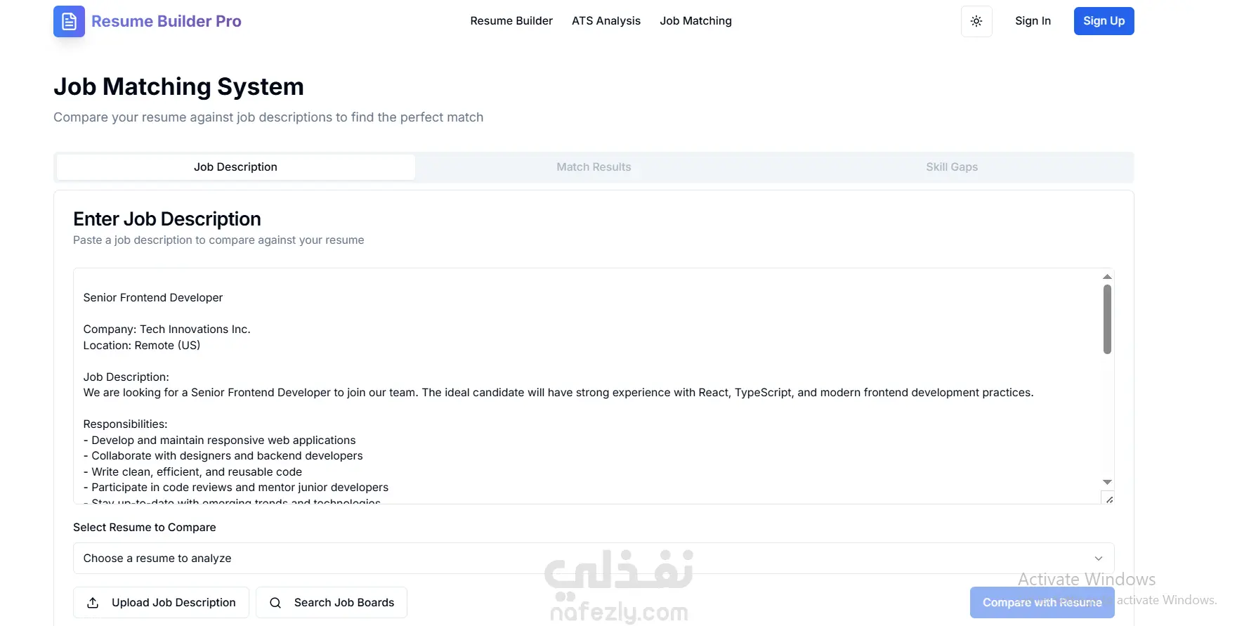 نصة إنشاء السيرة الذاتية ومطابقة الوظائف (Resume Builder & Job Matching Finder)