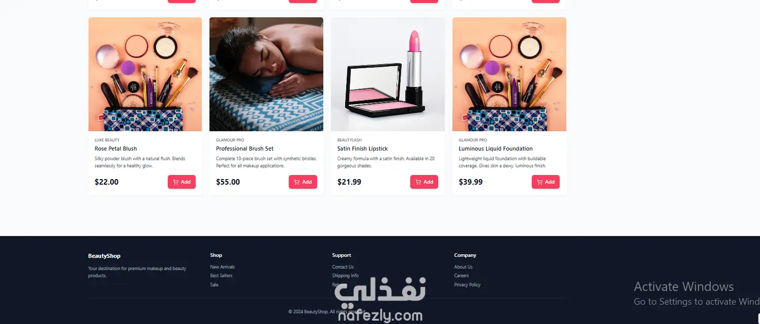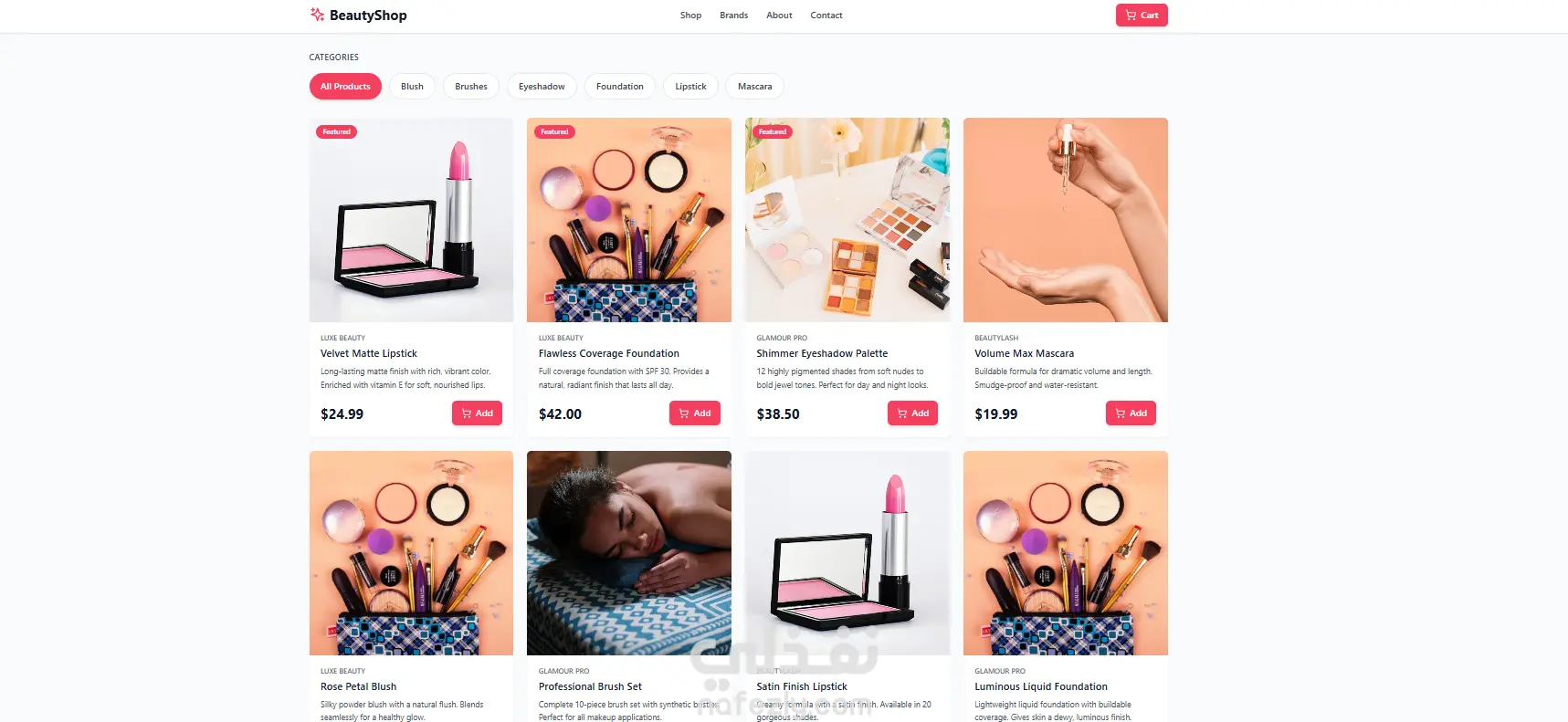 BeautyShop هو موقع إلكتروني متخصص في عرض وبيع منتجات التجميل والعناية الشخصية عبر الإنترنت. الهدف منه إنه يقدّم تجربة تسوق سهلة، سريعة، وجذابة لكل مستخدم يهتم بالمكياج، العناية بالبشرة، العطور، والإكسسوارات.