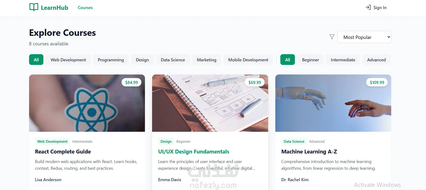 منصة الكورسات الإلكترونية (Online Courses Platform)