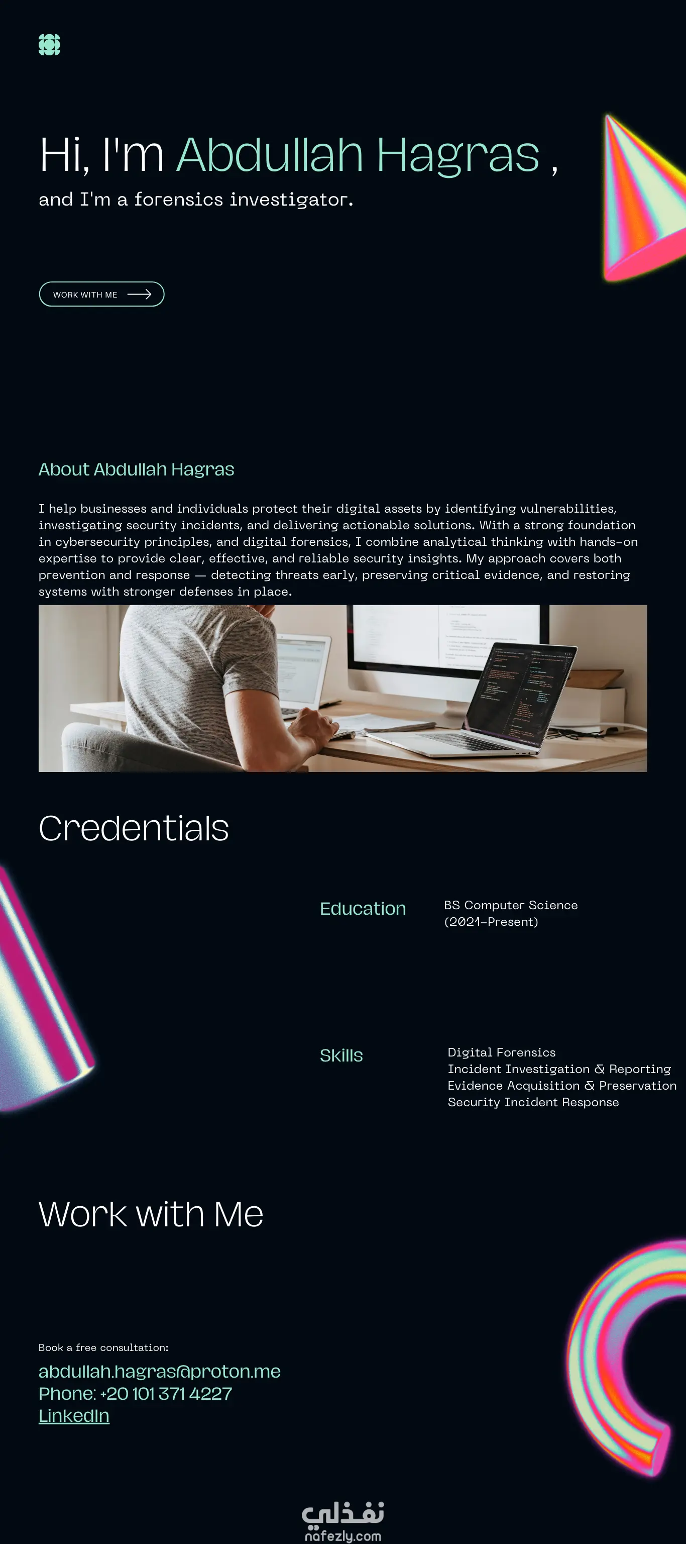 بطاقة أعمال (portfolio) محقق جنائي