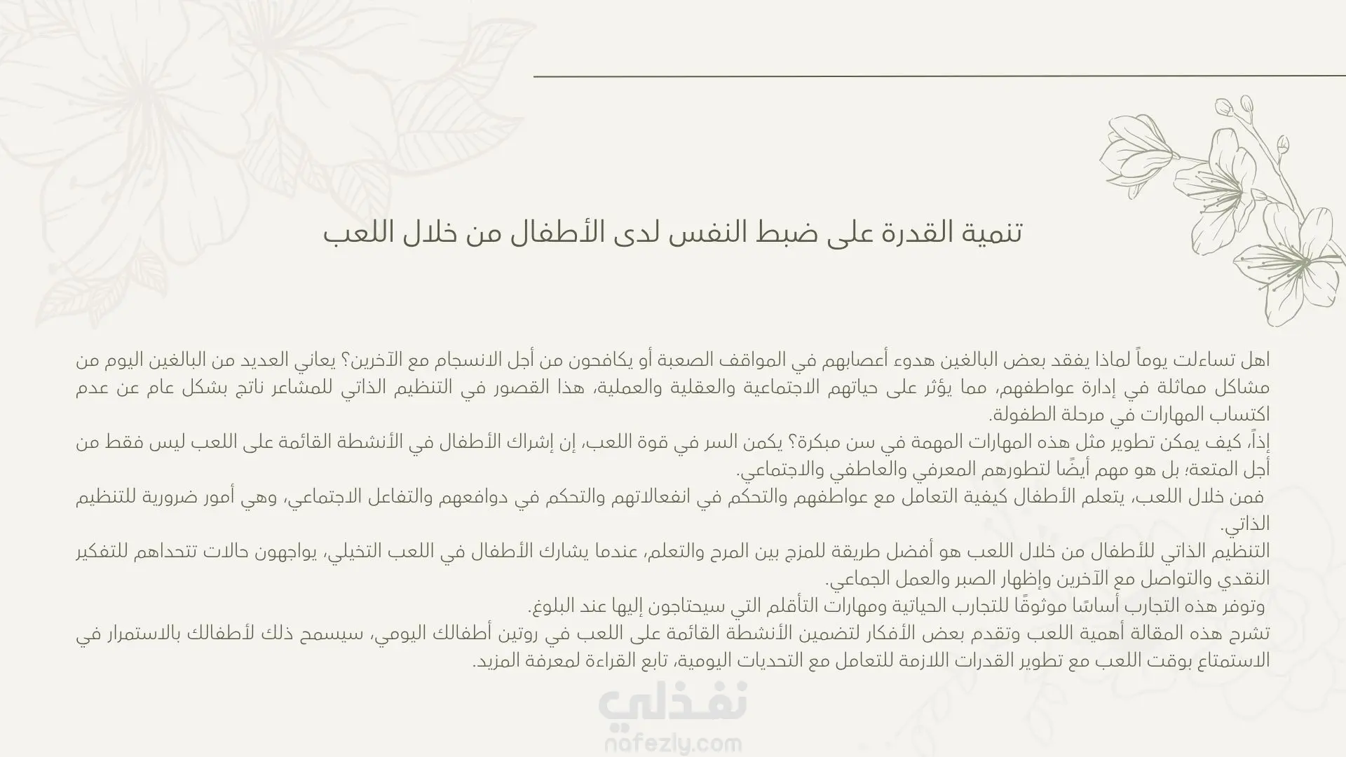 تنمية القدرة على ضبط النفس لدى الأطفال من خلال اللعب