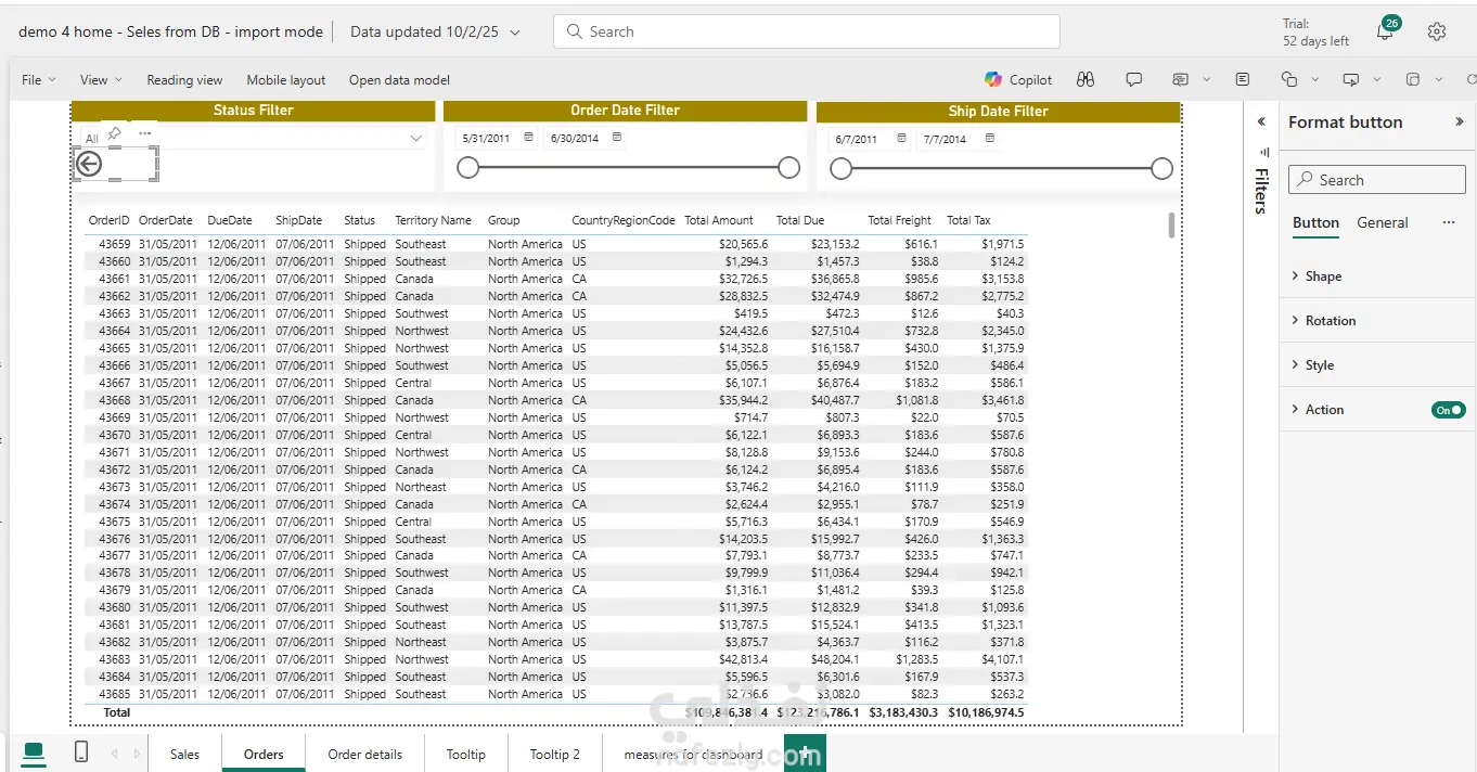 - استيراد البيانات من SQL Server إلى Power BI.