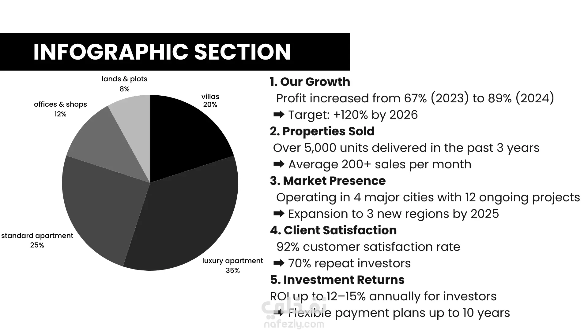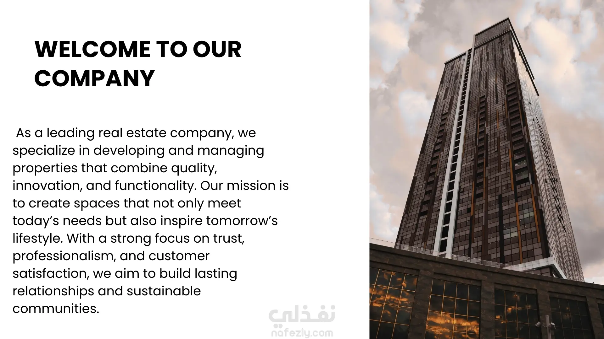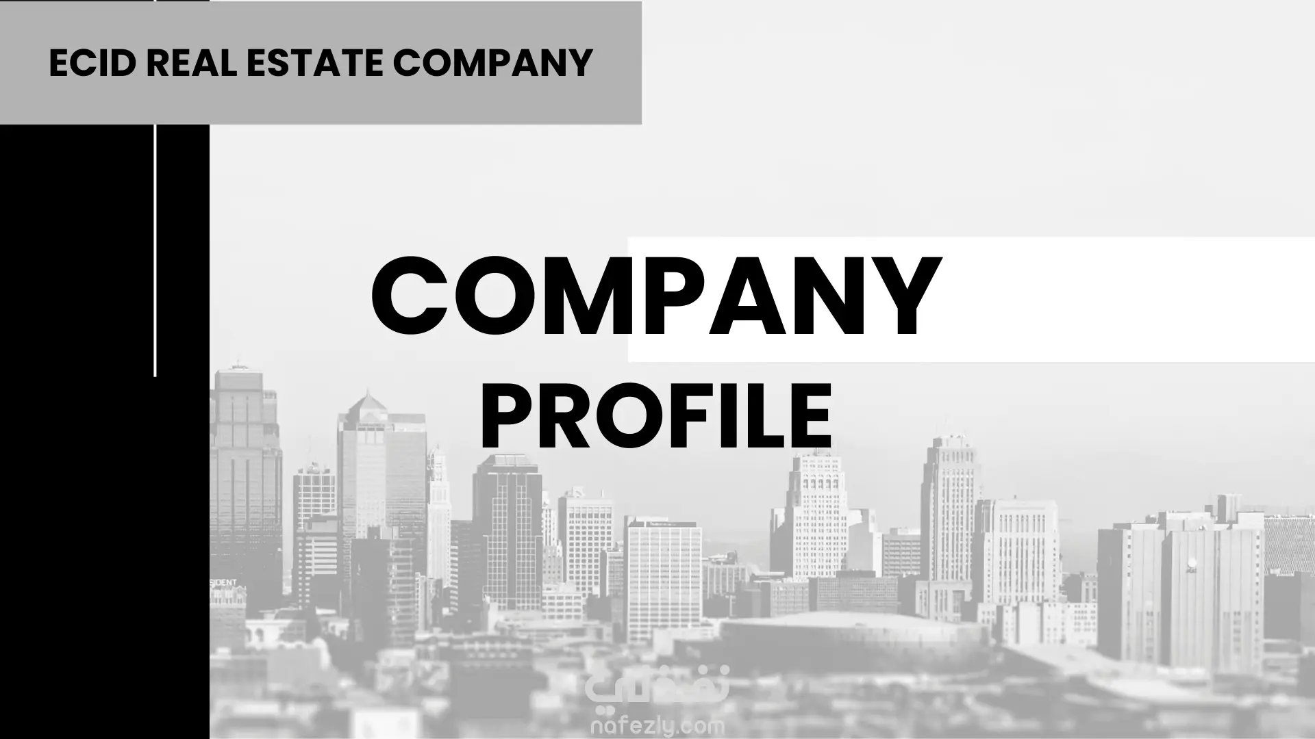 بروفايل شركة عقارية بتصميم مينيمال أبيض وأسود