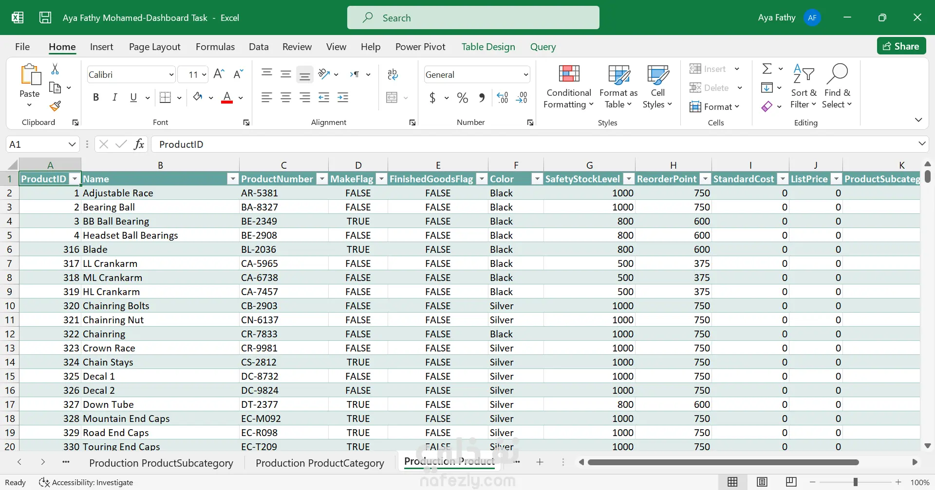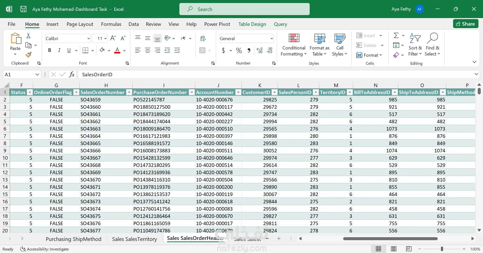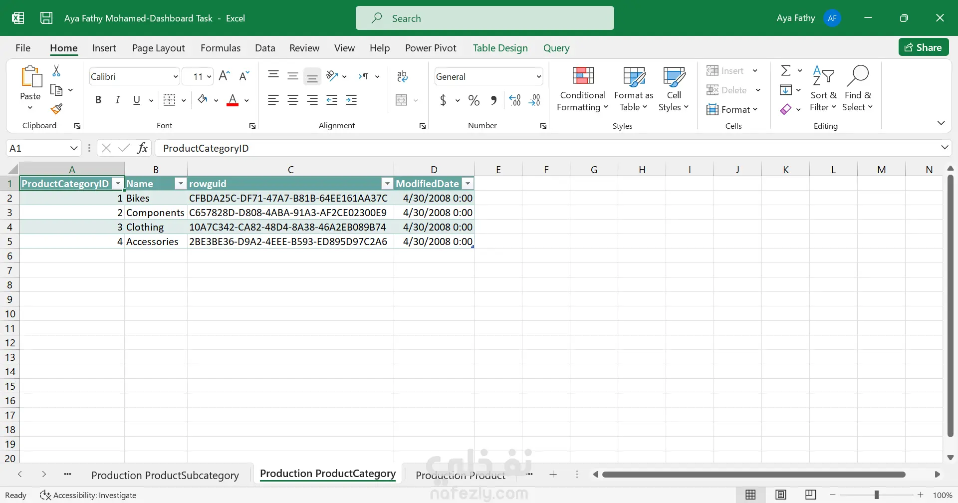 أنشأت داشبورد تفاعلي في Excel لتحليل مبيعات AdventureWorks عبر البلدان والسنوات. استخدمت قاعدة بيانات (AdventureWorks2016.bak) التي تم استيرادها عبر SQL Server إلى Excel، حيث تضمنت 3 جداول رئيسية: المنتجات (13 عمود)، التصنيفات (4 أعمدة)، والتصنيفات الفرعية (5 أعمدة). قمت بتحليل كميات المبيعات والإيرادات باستخدام مخططات دائرية وشريطية وبطاقات تقييم لعرض التوزيع الجغرافي والأداء الزمني.