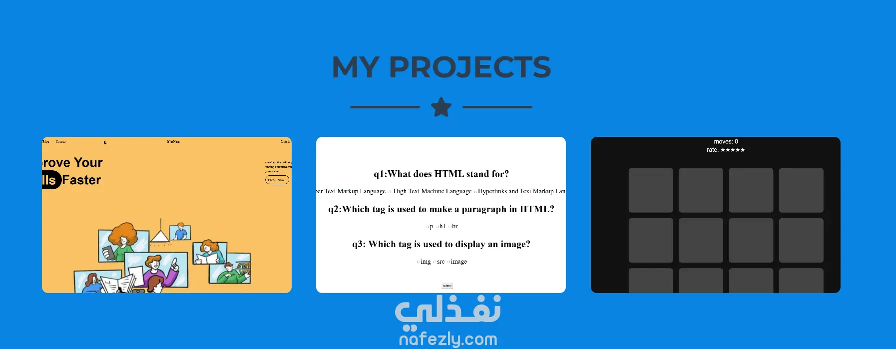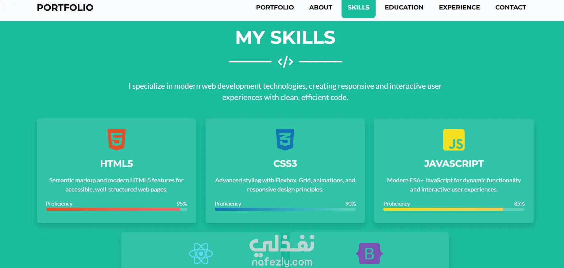 Skills: عرض المهارات التقنية في HTML، CSS، وJavaScript.