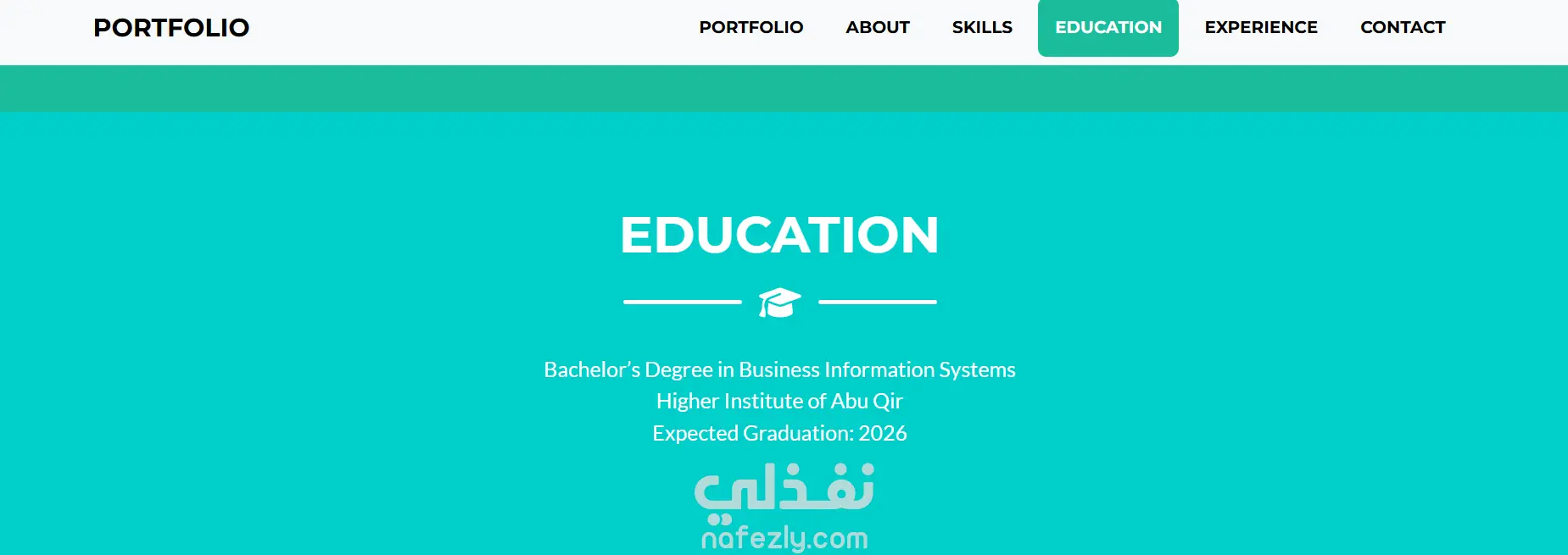 Portfolio: عرض لأهم الأعمال السابقة مع صور وروابط.