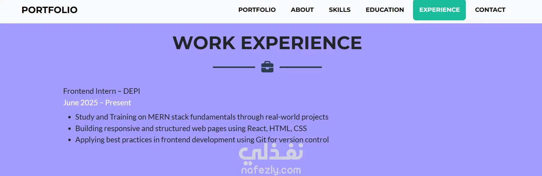 Experience: الخبرات العملية والمشاريع المنفذة.