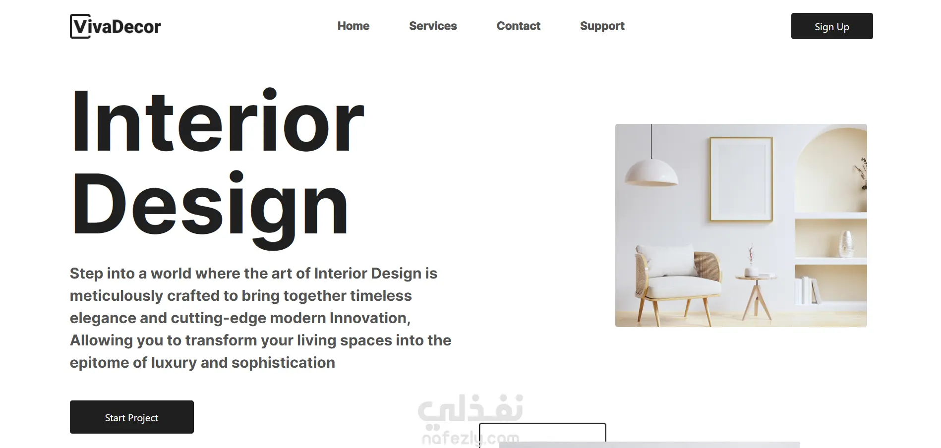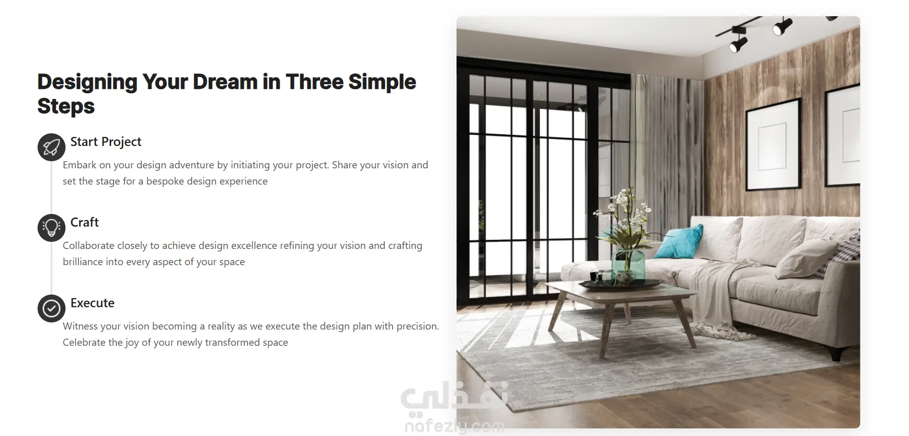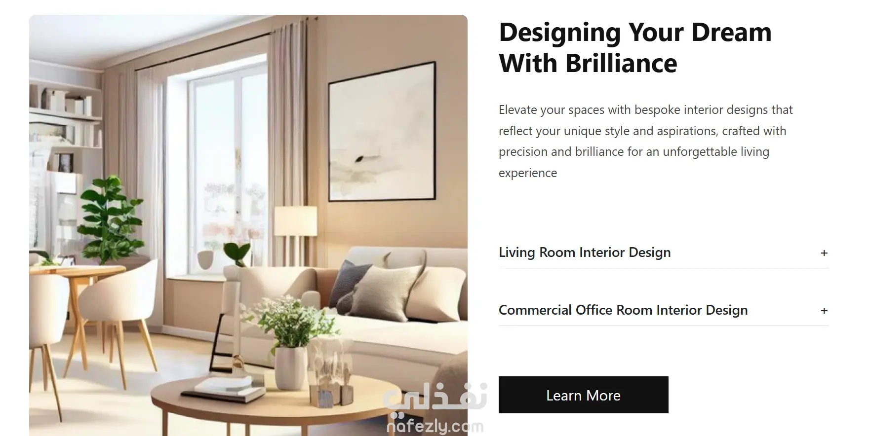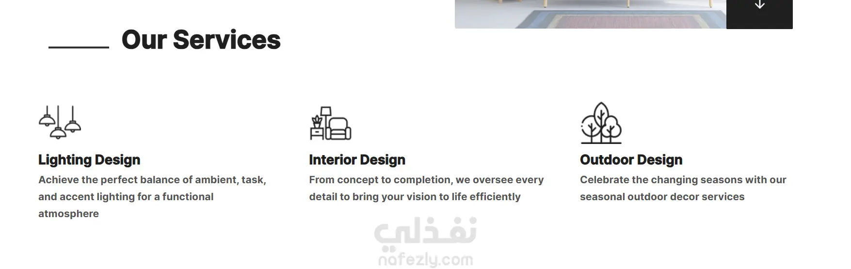 موقع تصميم داخلي احترافي – صفحة عرض خدمات التصميم الداخلي