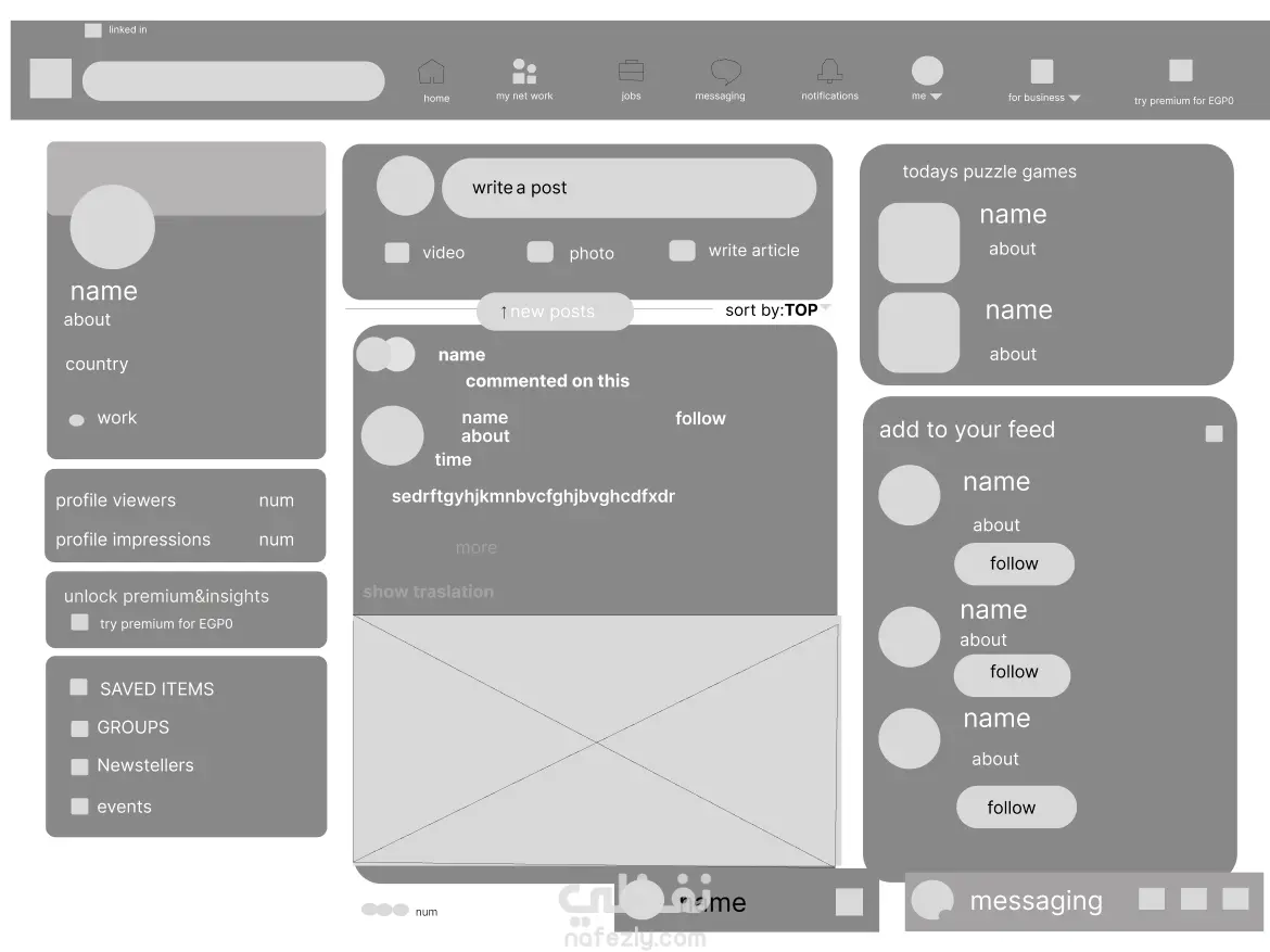 wireframe for LinkedIn