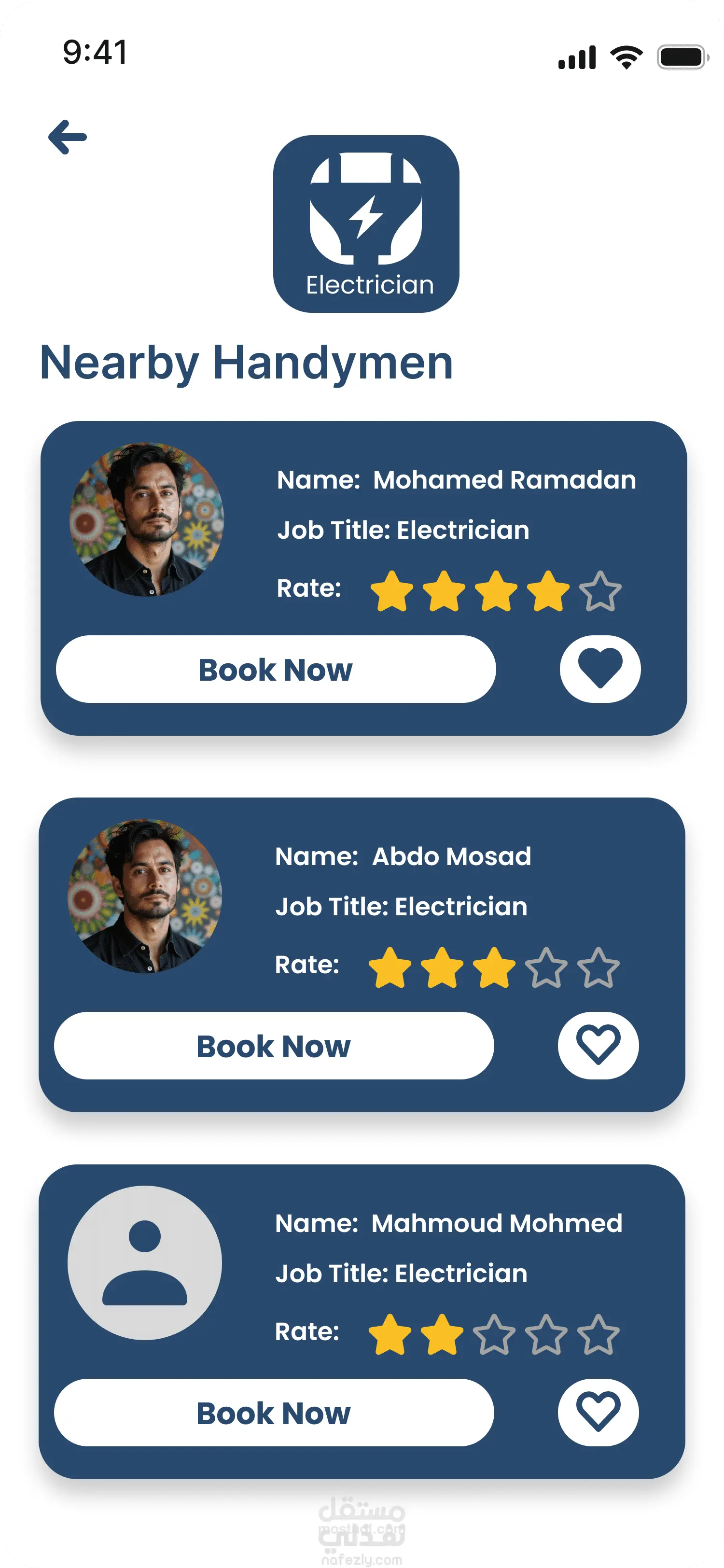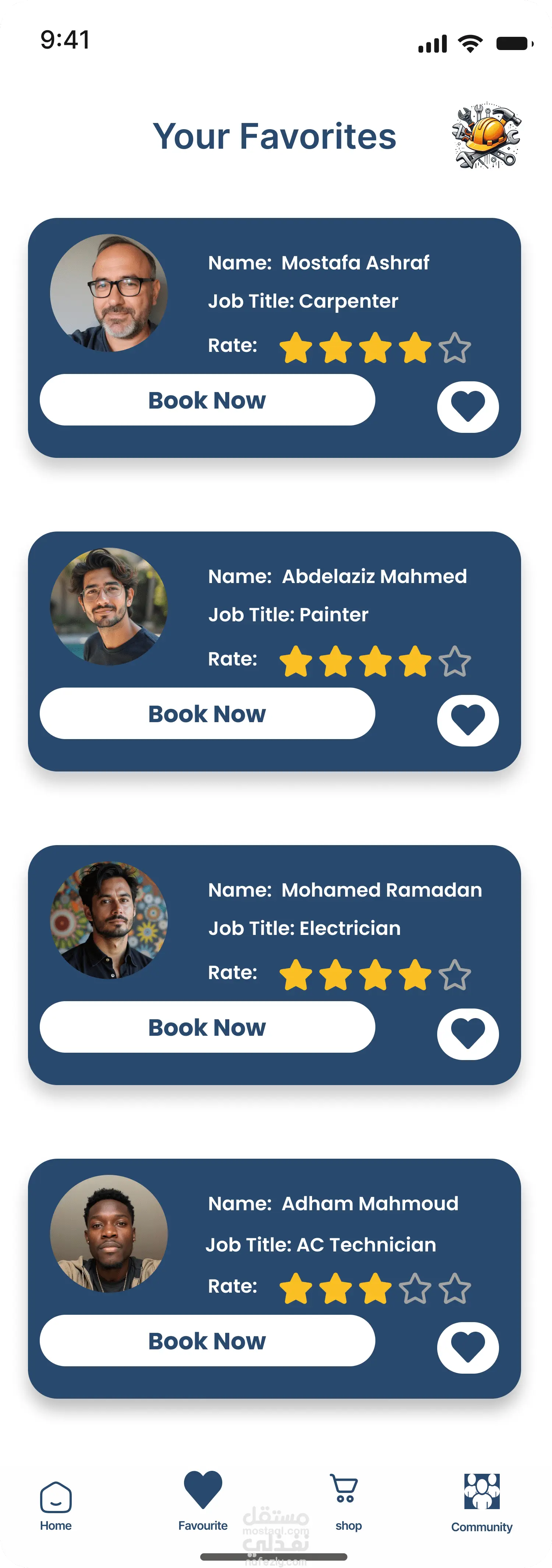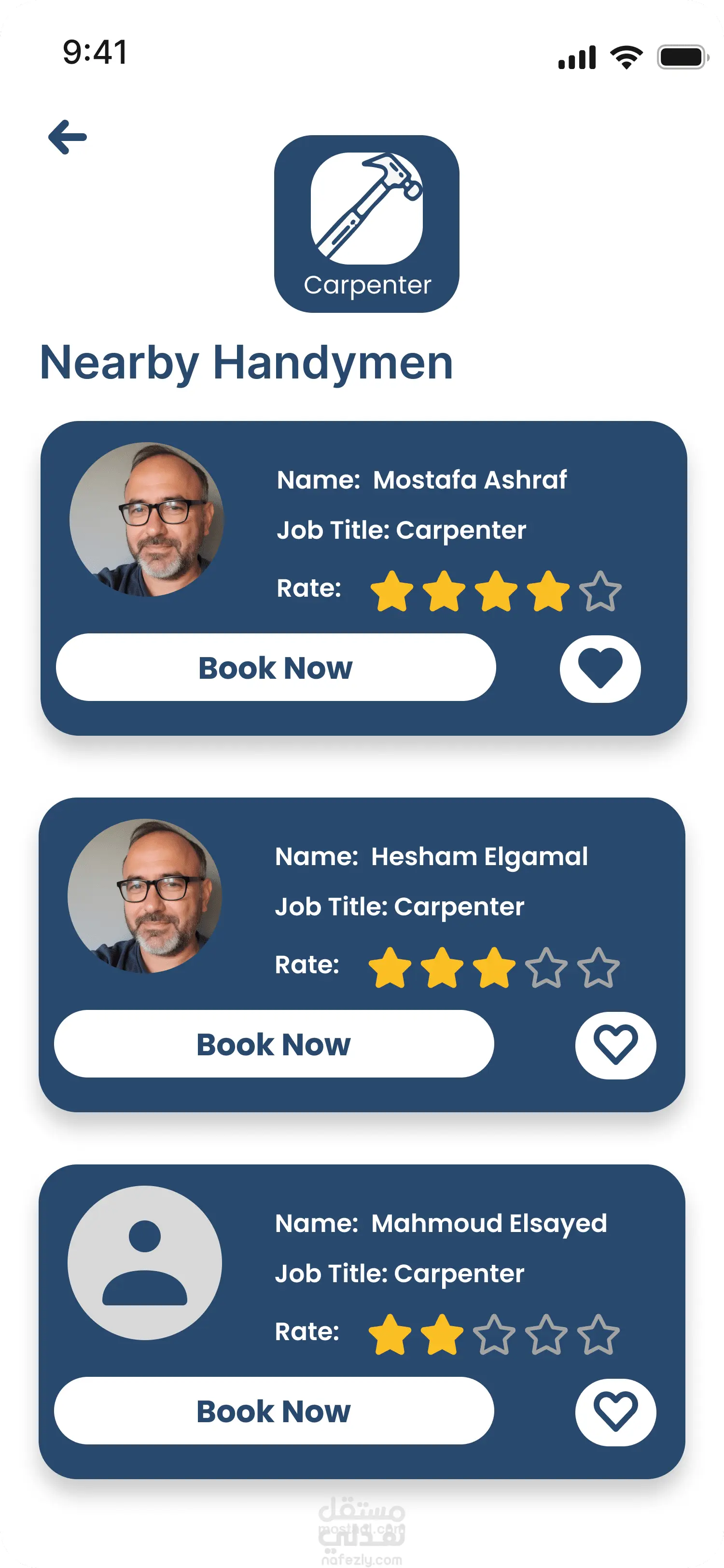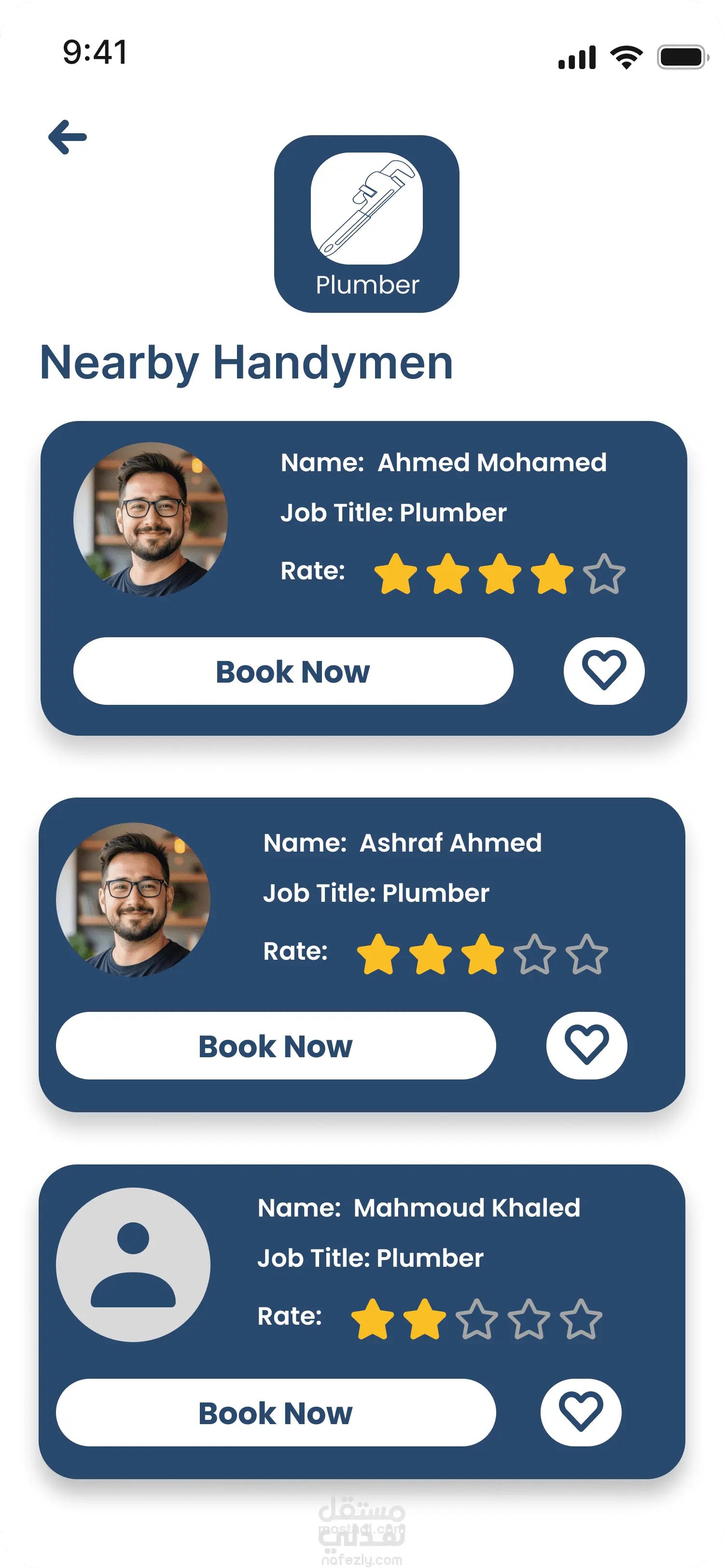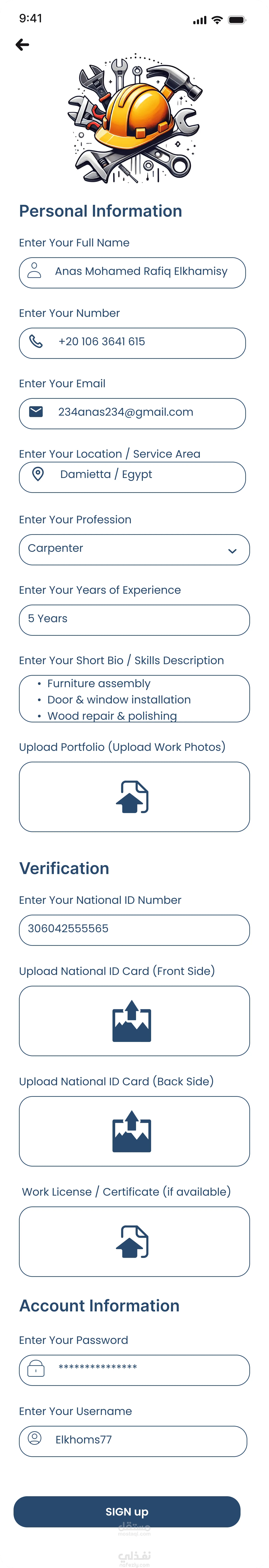 فنَّي تطبيق جوال متكامل يربط العملاء بالحرفيين المهرة، كالنجارين والكهربائيين والسباكين. يتيح التطبيق للمستخدمين تصفح ملفات تعريف المهنيين، وحجز الخدمات، وإدارة الطلبات بسلاسة. صُمم النظام باستخدام Flutter وState Managment (GetX وProvider) للواجهة الأمامية، وواجهة برمجة تطبيقات RESTful خلفية آمنة. يتضمن النظام المصادقة، وإدارة الطلبات، والمفضلات، والإشعارات الفورية. يتميز بهيكلية قابلة للتطوير، ويدعم ميزات مستقبلية مثل الدفع الإلكتروني، والتتبع المباشر، وتقييمات العملاء.