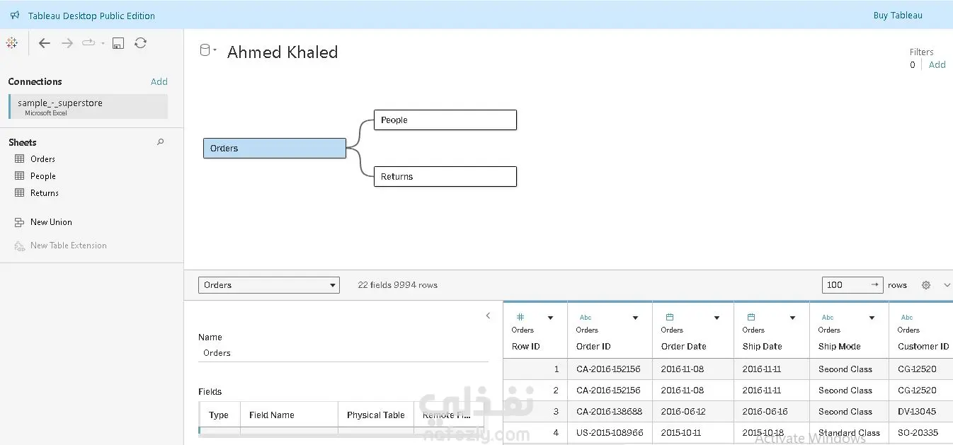 - أنشأت Scatter Plot يوضح العلاقة بين المبيعات والكمية حسب نوع الشحن: First Class - Second Class- Standard Class