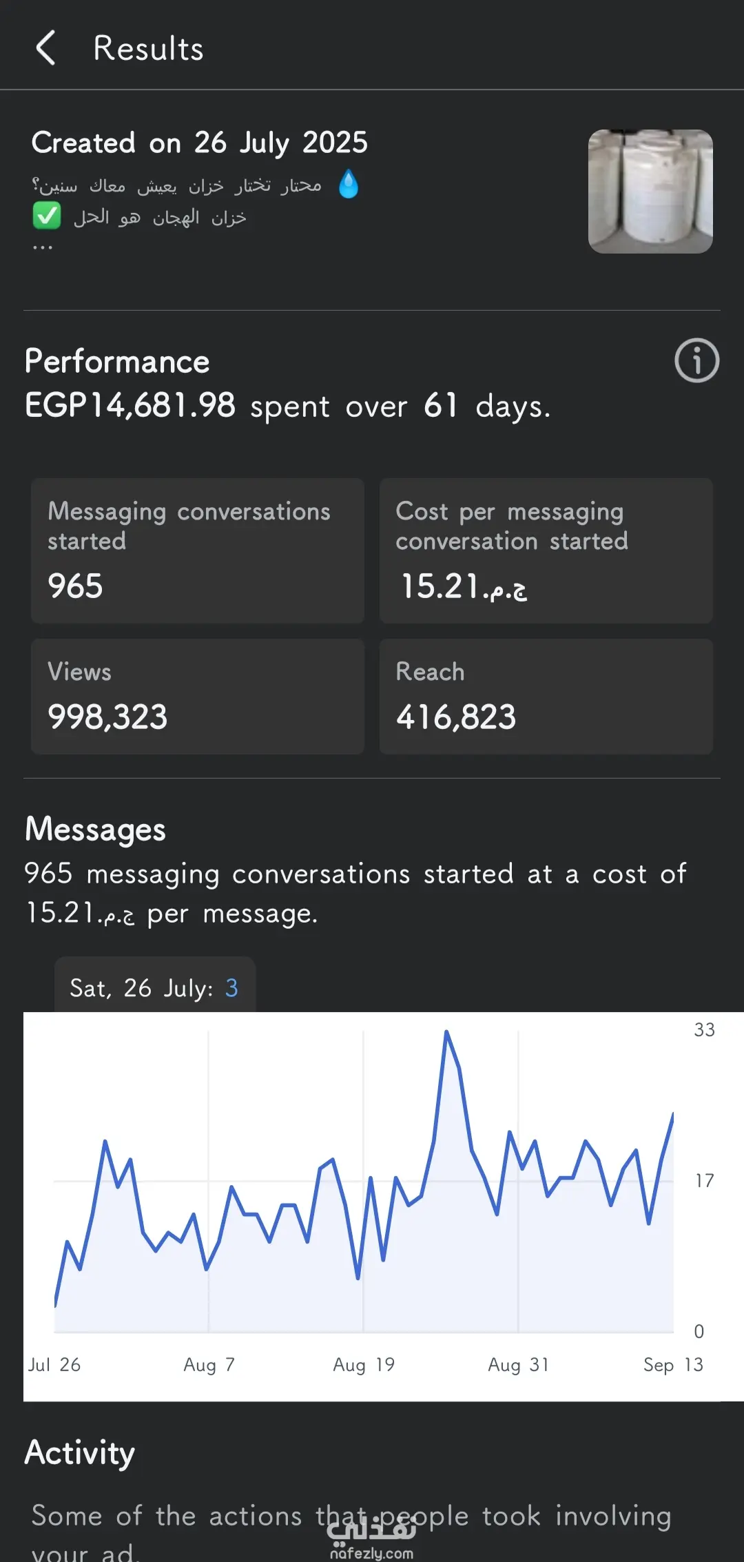 اعلان لشركة خزانات كبيرة داخل مصر و الصعيد الهدف الحصول علي اكبر كم من الرسائل