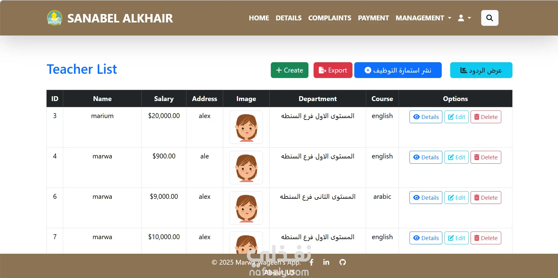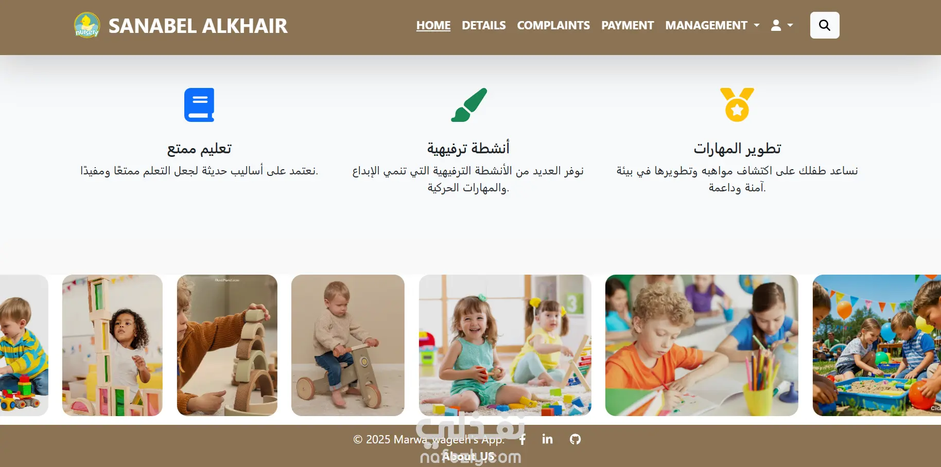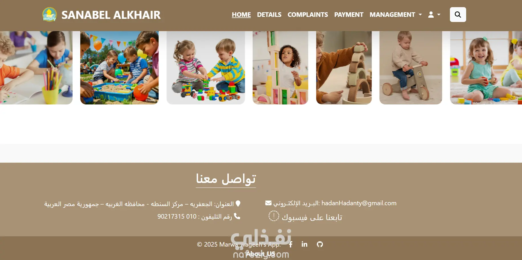 نظام إدارة حضانة عبر الويب تم تطويره لحضانة حقيقية، بالاعتماد على بحث ميداني ومقابلات مع المسؤولين. تم تصميم قاعدة البيانات بشكل واقعي وقابل للتوسع لتلبية الاحتياجات التشغيلية اليومية للحضانة.