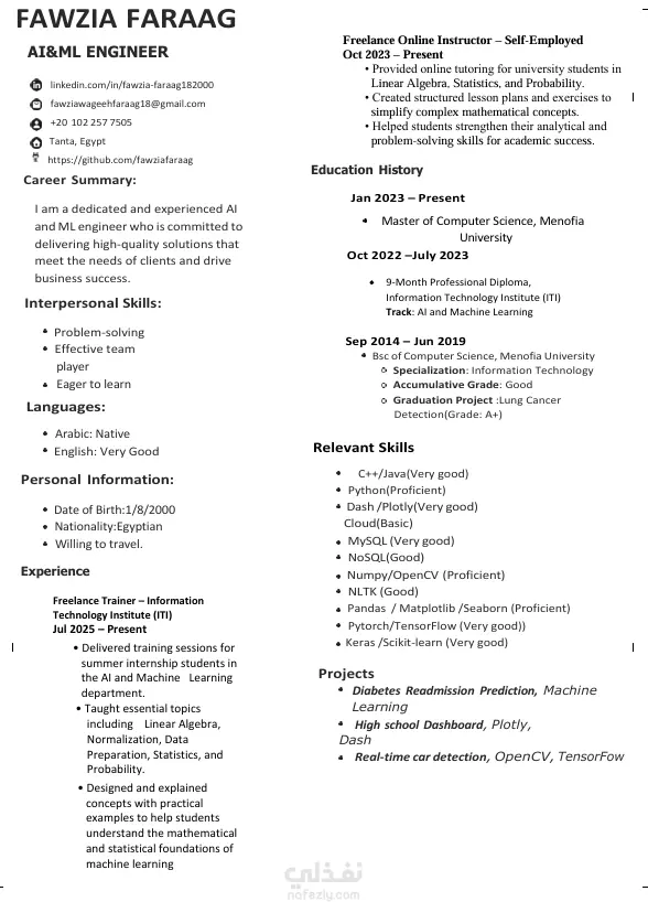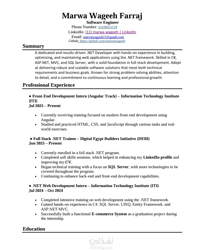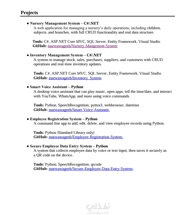 عملت تصميم سيرة ذاتية احترافية متوافقة مع نظام ATS (Applicant Tracking System) بحيث تمر بسهولة عبر أنظمة التوظيف وتظهر عند مسؤولي الموارد البشرية.