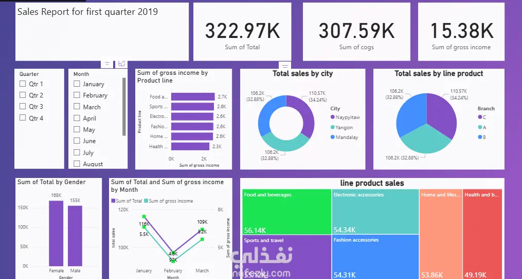 داشبورد لوحه معلومات مبيعات وتحليل البيانات باستخدام Power BI
