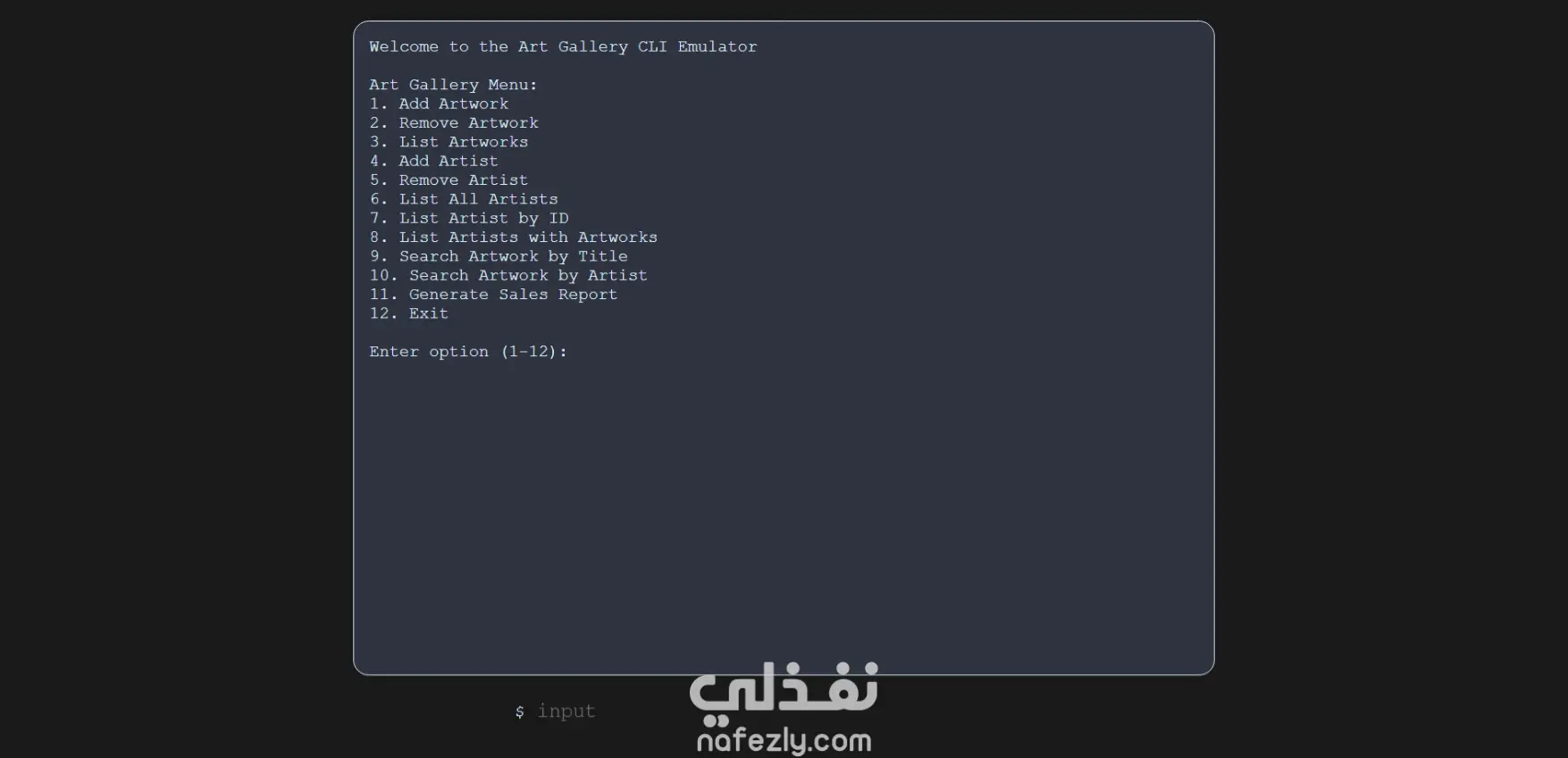تقارير وتحليلات: يحتوي النظام على خاصية لإنشاء تقرير مبيعات بسيط، يقوم بحساب إجمالي قيمة الأعمال الفنية المعروضة.