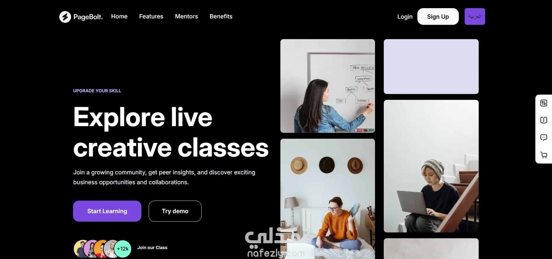 واجهة مستخدم عصرية وأنيقة لموقع "PageBolt"