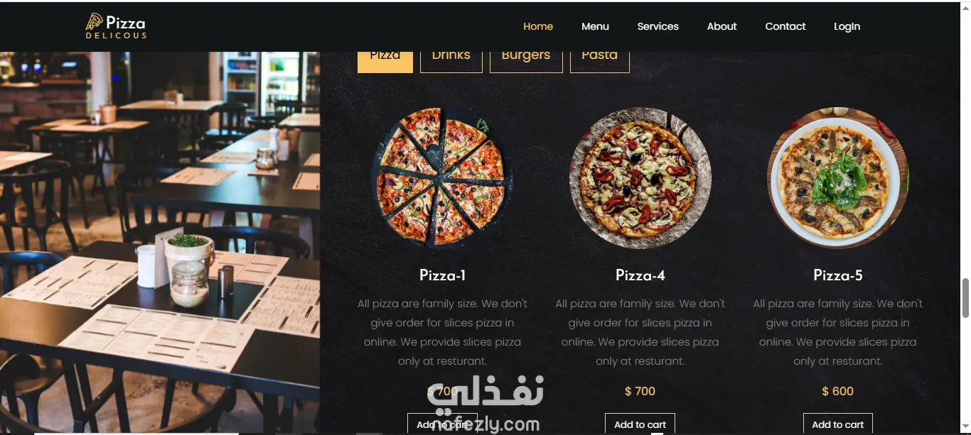 قمت بتطوير موقع ويب متكامل لمطعم بيتزا، يتيح للعملاء تصفح المنيو، إضافة الطلبات لعربة التسوّق، وإنهاء عملية الشراء أونلاين بطريقة سلسة وسريعة.