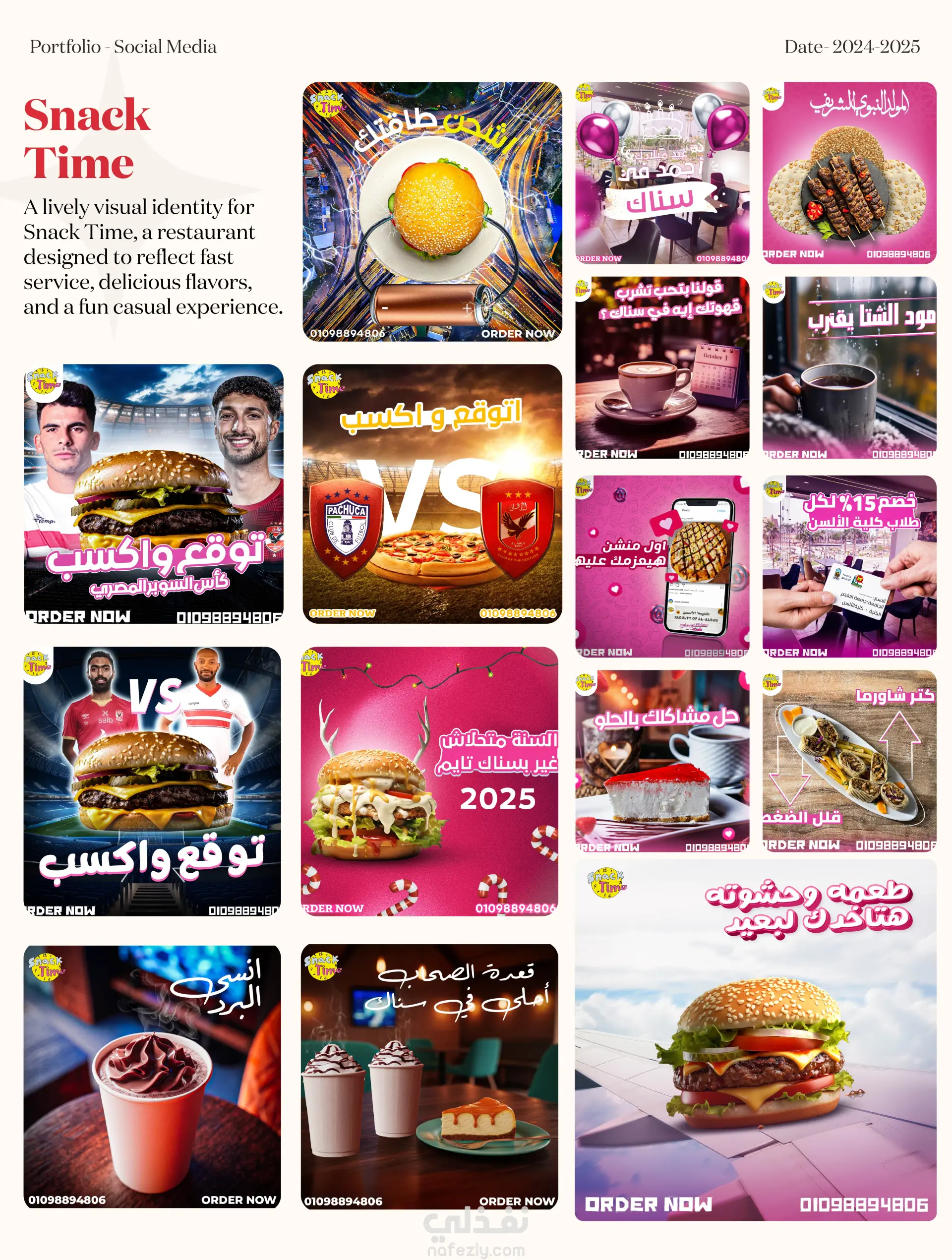 في هذا المشروع أستعرض مجموعة من التصاميم الإبداعية المخصصة لمنصات التواصل الاجتماعي (Instagram, Facebook, Twitter, LinkedIn) والتي نفذتها لعملاء في مجالات مختلفة مثل المتاجر الإلكترونية، المطاعم، العيادات الطبية، والشركات الناشئة. ركزت في التصاميم على إبراز الهوية البصرية للعلامة التجارية، وضمان وضوح الرسالة التسويقية، مع الحفاظ على التوازن بين الجاذبية البصرية والاحترافية، بما يعزز التفاعل ويزيد من جذب العملاء المستهدفين.