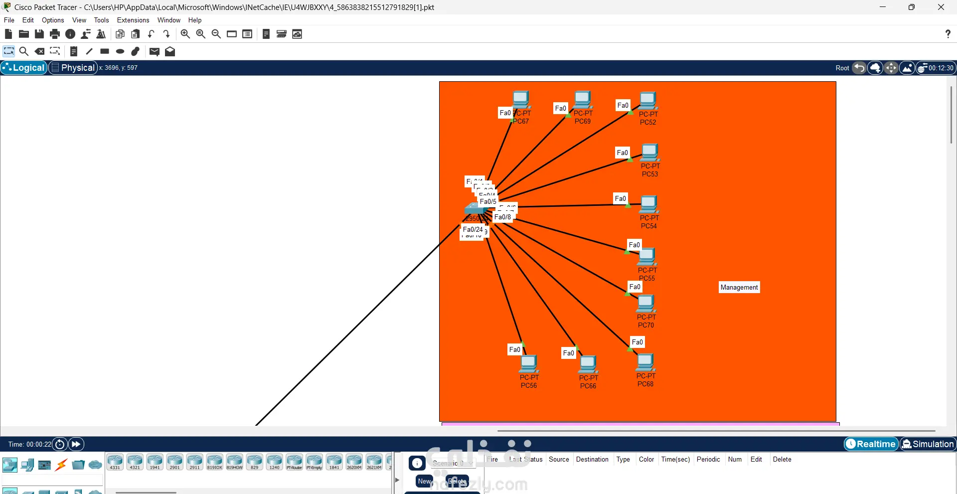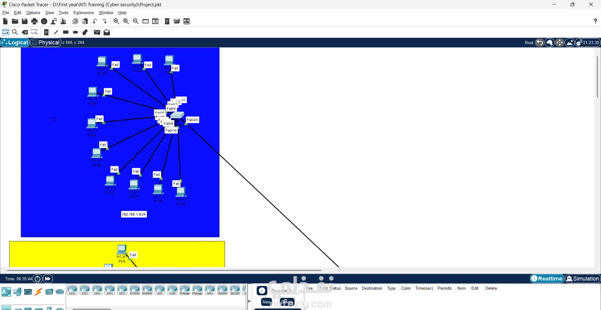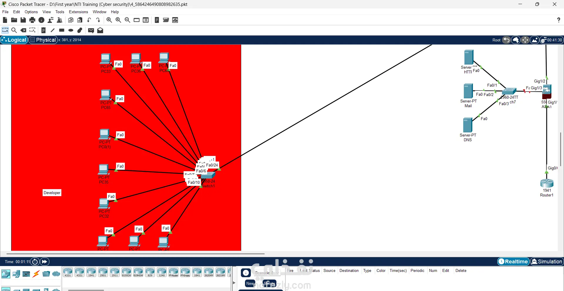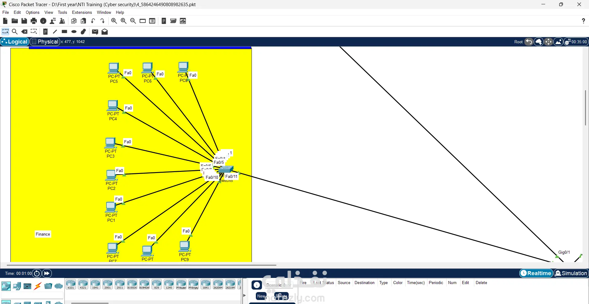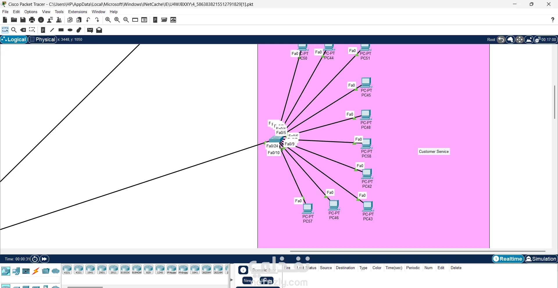 بناء شبكة مكونة من 7 اقسام كل قسم مكون من 10 اجهزة وهم قسم (Finance, HR , DataBase , Management, Developer, IT , Customer Service). IP,subnet mask , gateway لكل جهاز. technologies كتيره لعزل اقسام عن اقسام اخري للأمان. جدار ناري للأمان ومنع الاختراق ده غير ال technologies المضافه.