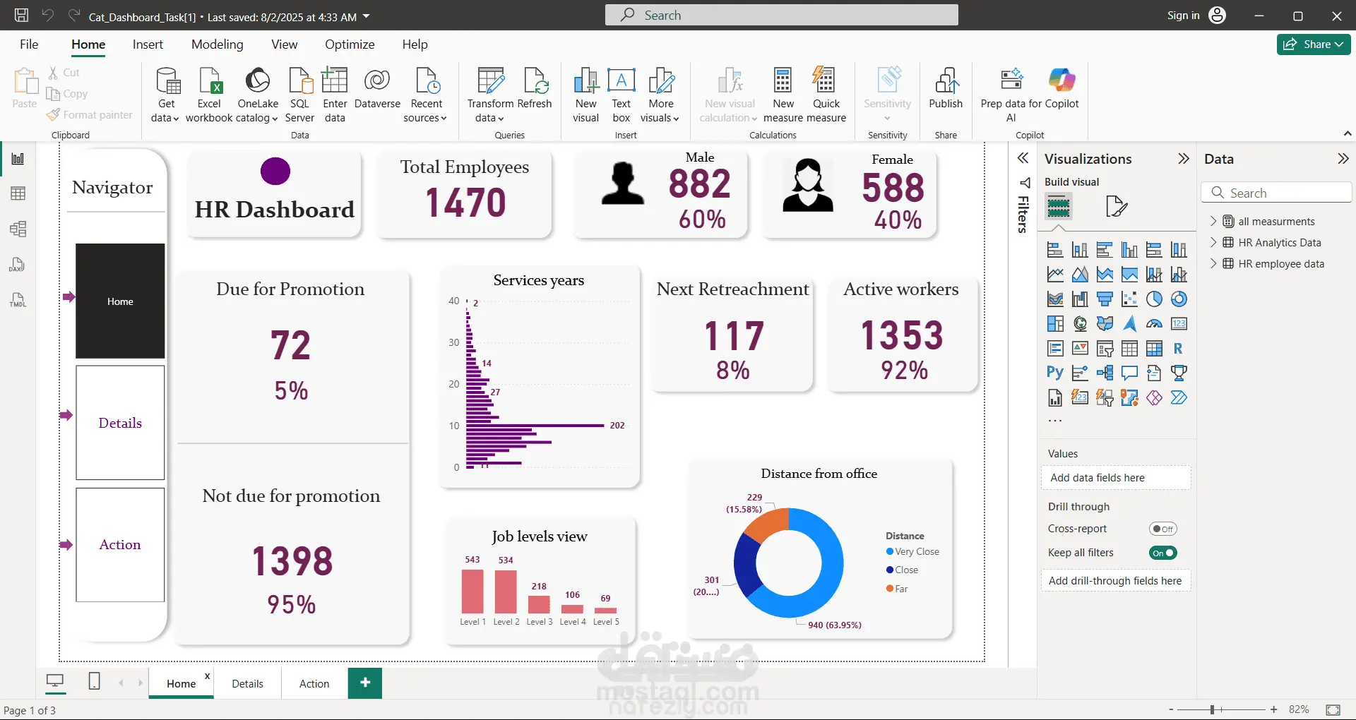 عرض إحصائيات دقيقة عن الموظفين مثل: عدد العاملين، التوزيع بين الذكور والإناث، سنوات الخدمة، مستويات الوظائف، نسب الترقيات، ومعدلات الاستبقاء.