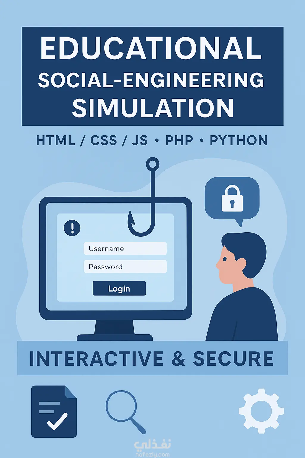 مشروع تعليمي محاكي للهندسة الاجتماعية تم تطويره باستخدام HTML/CSS/JavaScript للواجهة، PHP لمعالجة البيانات، وPython كخادم محاكاة لسيناريوهات التفاعل. الهدف توضيح مؤشرات الهجوم ورفع وعي المستخدمين كيفية التعرف على محاولات الاحتيال وأدوات الرصد المستخدمة في بيئة معزولة وآمنة. ⚠️ تنبيه أخلاقي وقانوني: هذا المشروع تعليمي ونفّذته داخل بيئة اختبار معزولة.