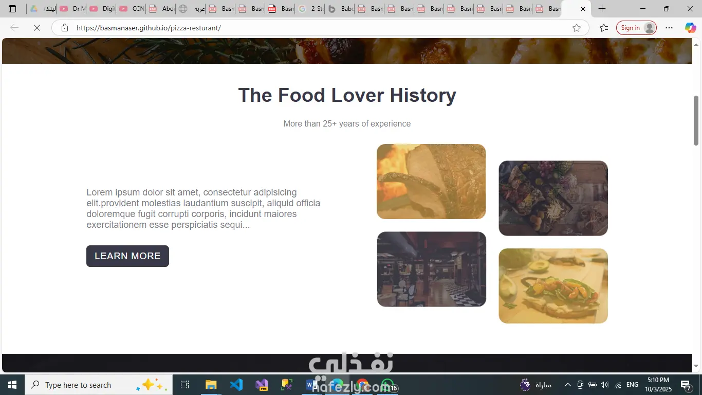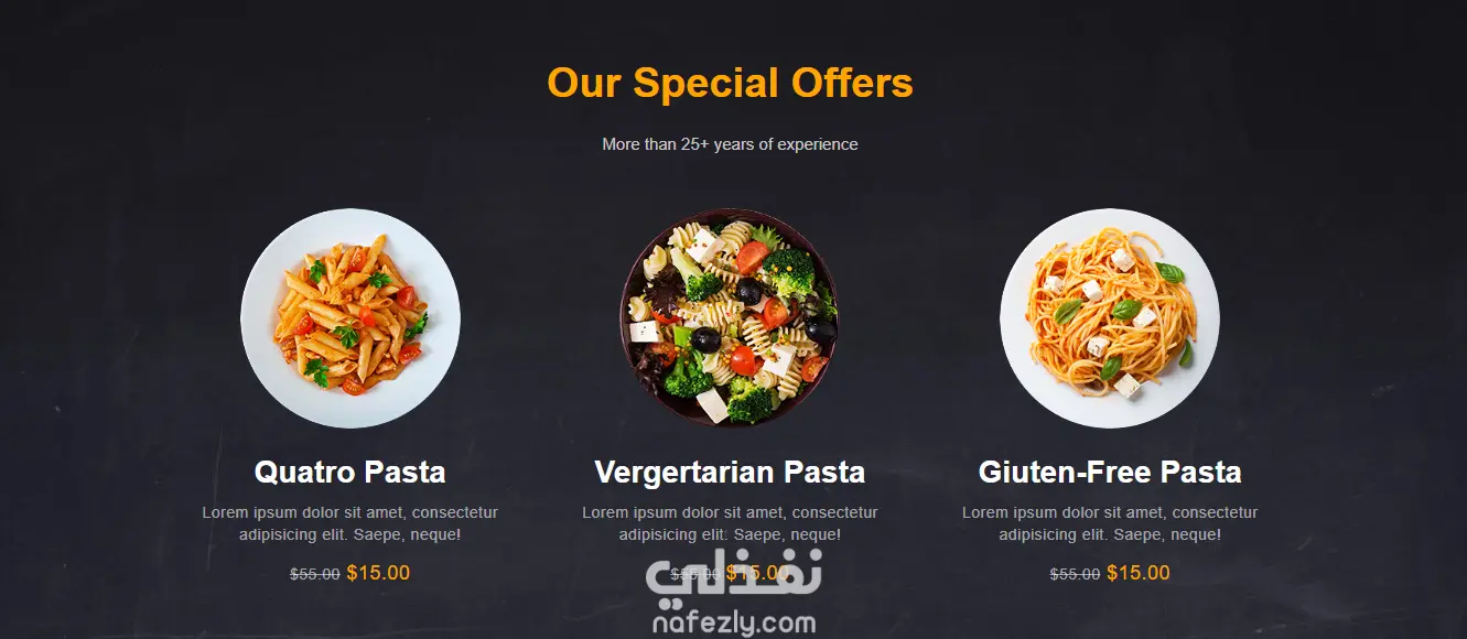 قمت بتصميم وتطوير موقع تفاعلي لمطعم بيتزا باستخدام HTML وCSS.