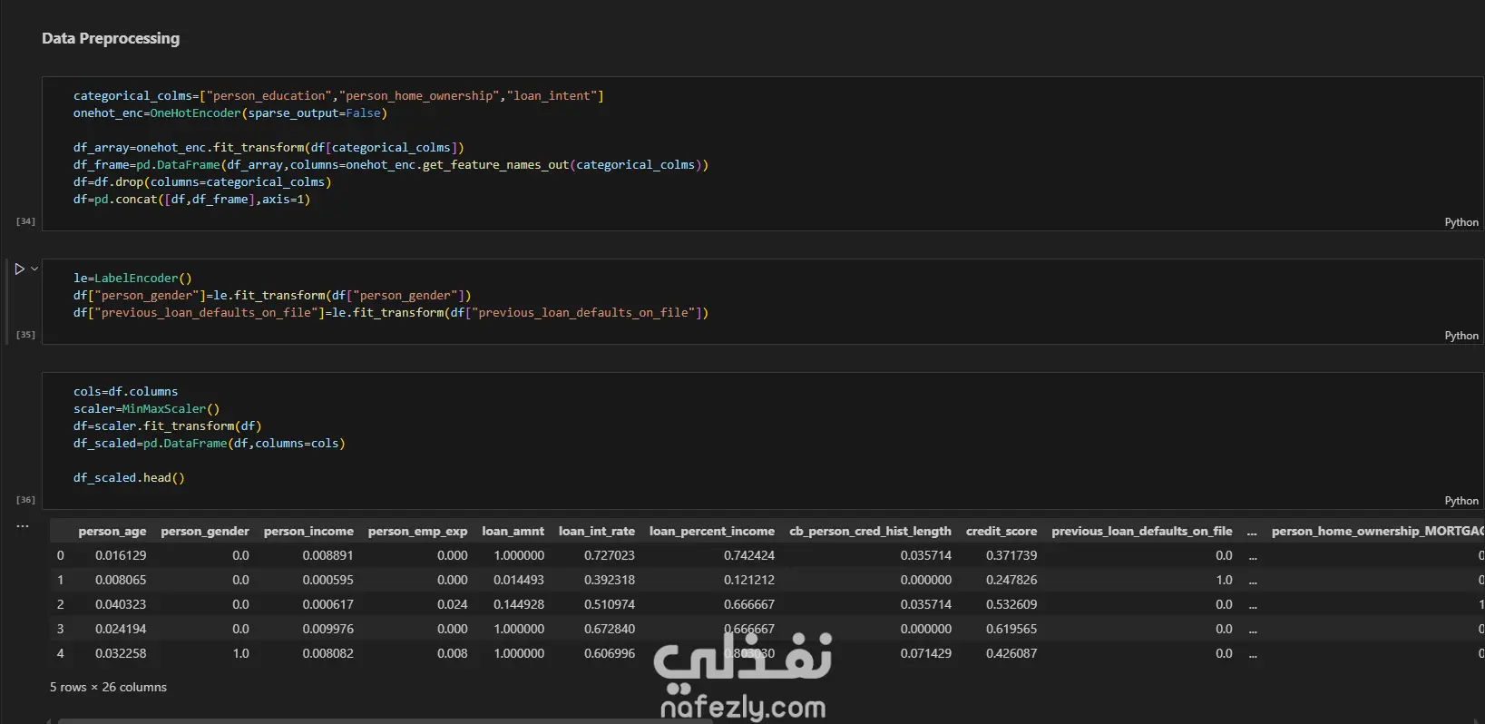 النظام يعتمد على بيانات العملاء (مثل العمر، الدخل، مستوى التعليم، الحالة الائتمانية…) ويطبق مجموعة من الخطوات المتكاملة بدءًا من معالجة البيانات وحتى بناء النموذج النهائي.