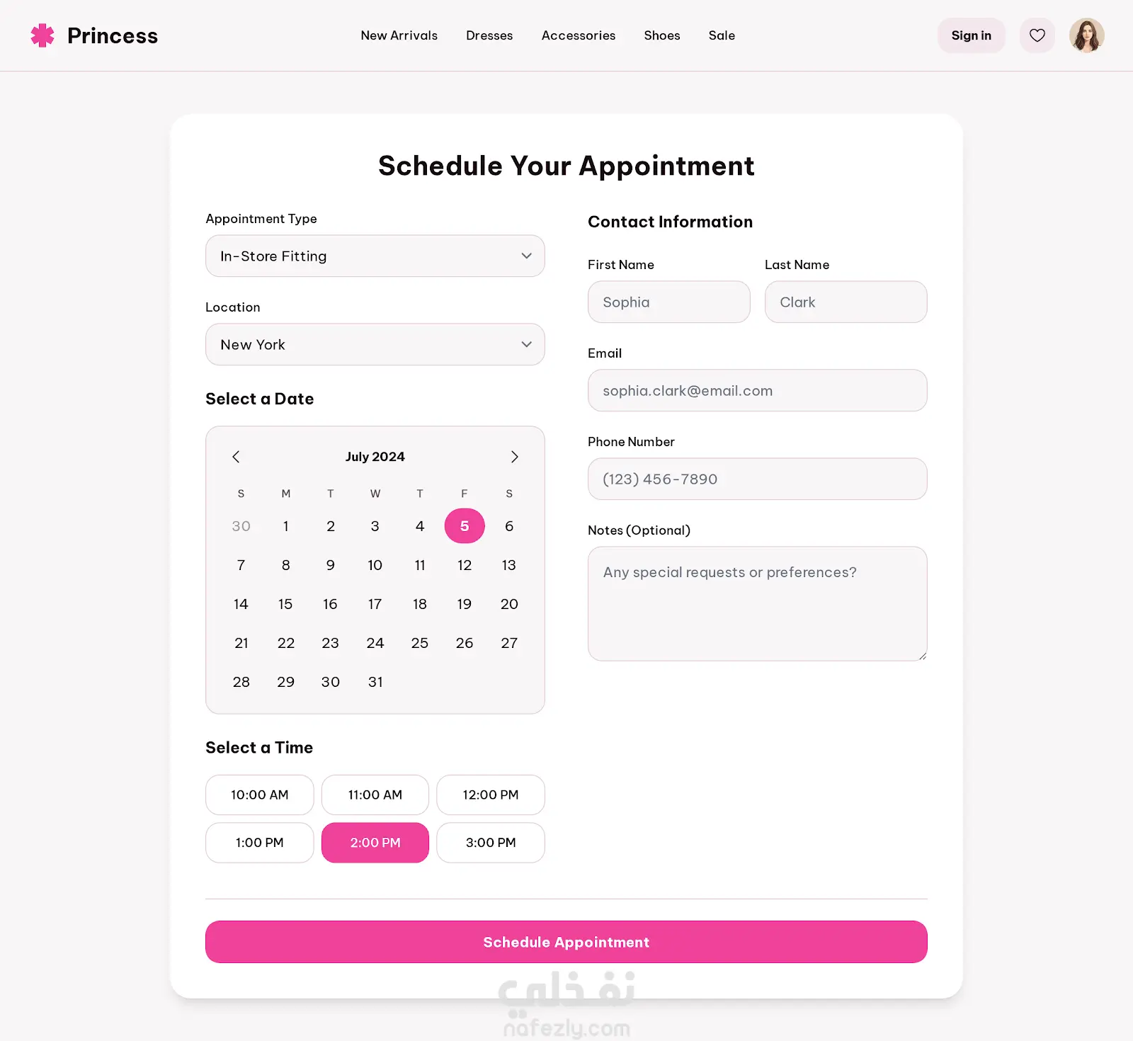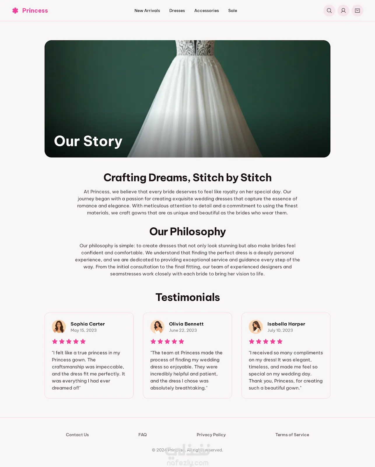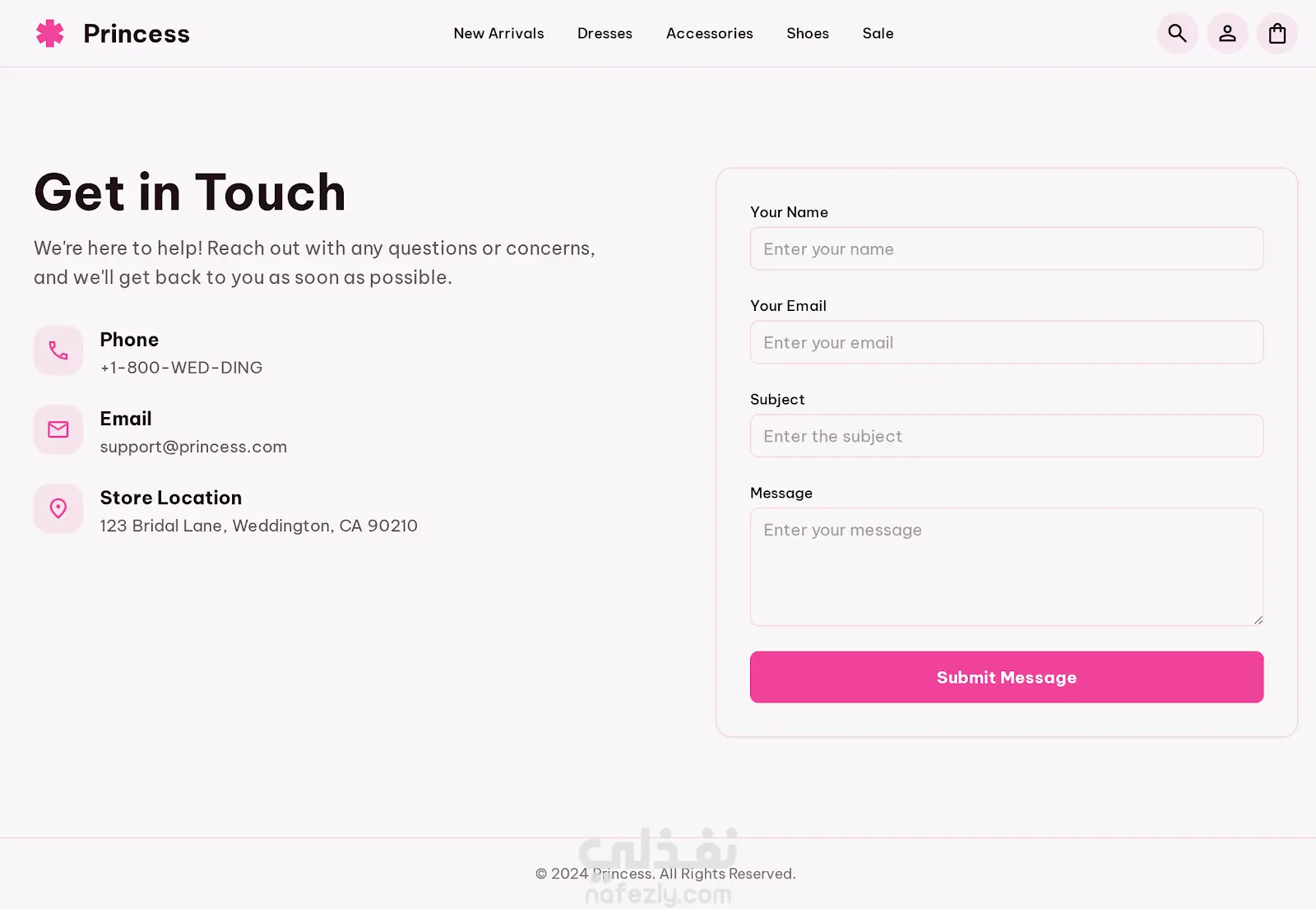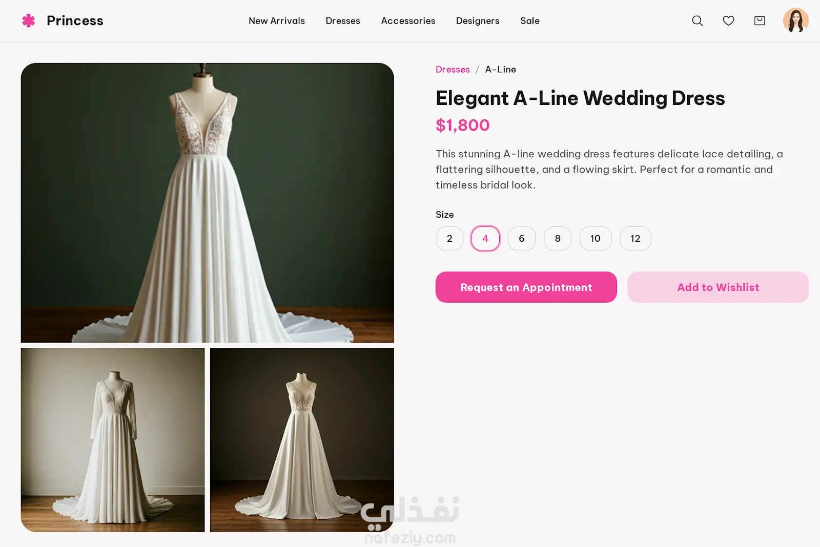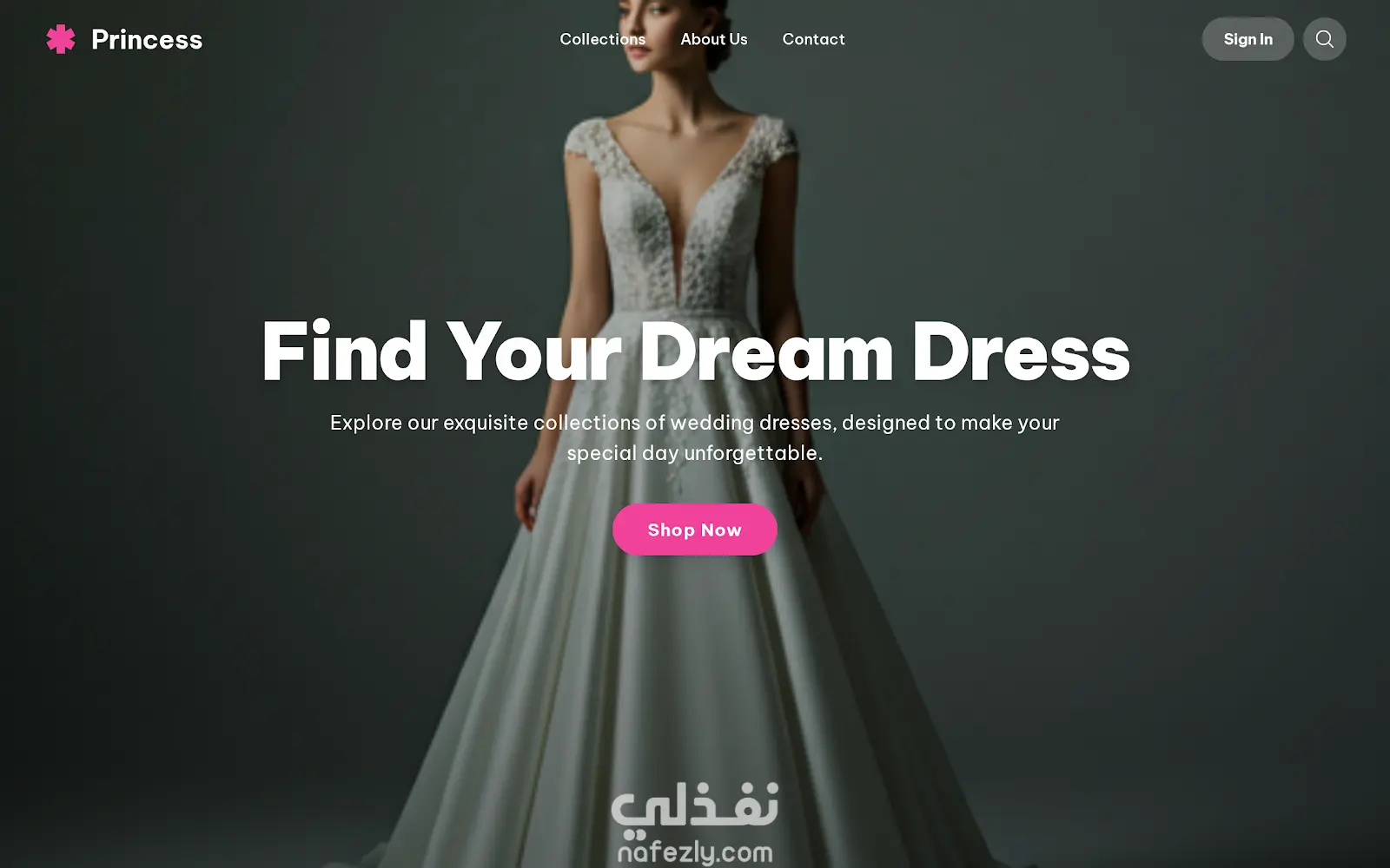 🎯 الهدف: إبراز فستان الزفاف بطريقة أنيقة وجذابة تعكس هوية العلامة التجارية "Princess"
