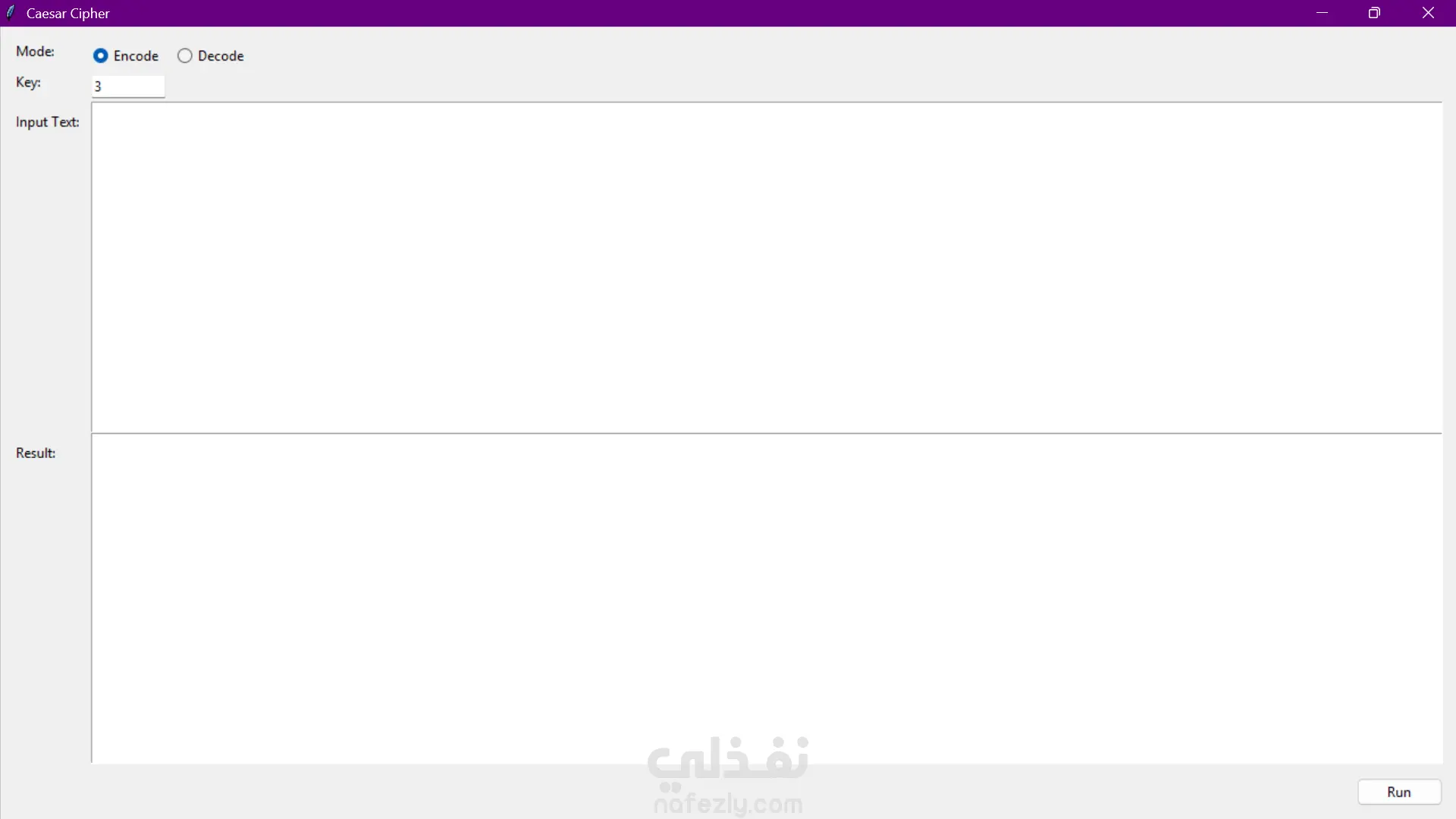 مشروع شفرة قيصر (Caesar Cipher) يتيح تشفير وفك تشفير النصوص باستخدام مفتاح يحدده المستخدم. يقوم البرنامج بالتحقق من صحة قيمة المفتاح (بين 0 و 25)، ويعالج كلًّا من الأحرف الكبيرة والصغيرة مع إبقاء باقي الرموز دون تغيير. كما يتضمن ميزات لمسح النص، ونسخ النتائج، والتبديل بسهولة بين وضعي التشفير وفك التشفير.