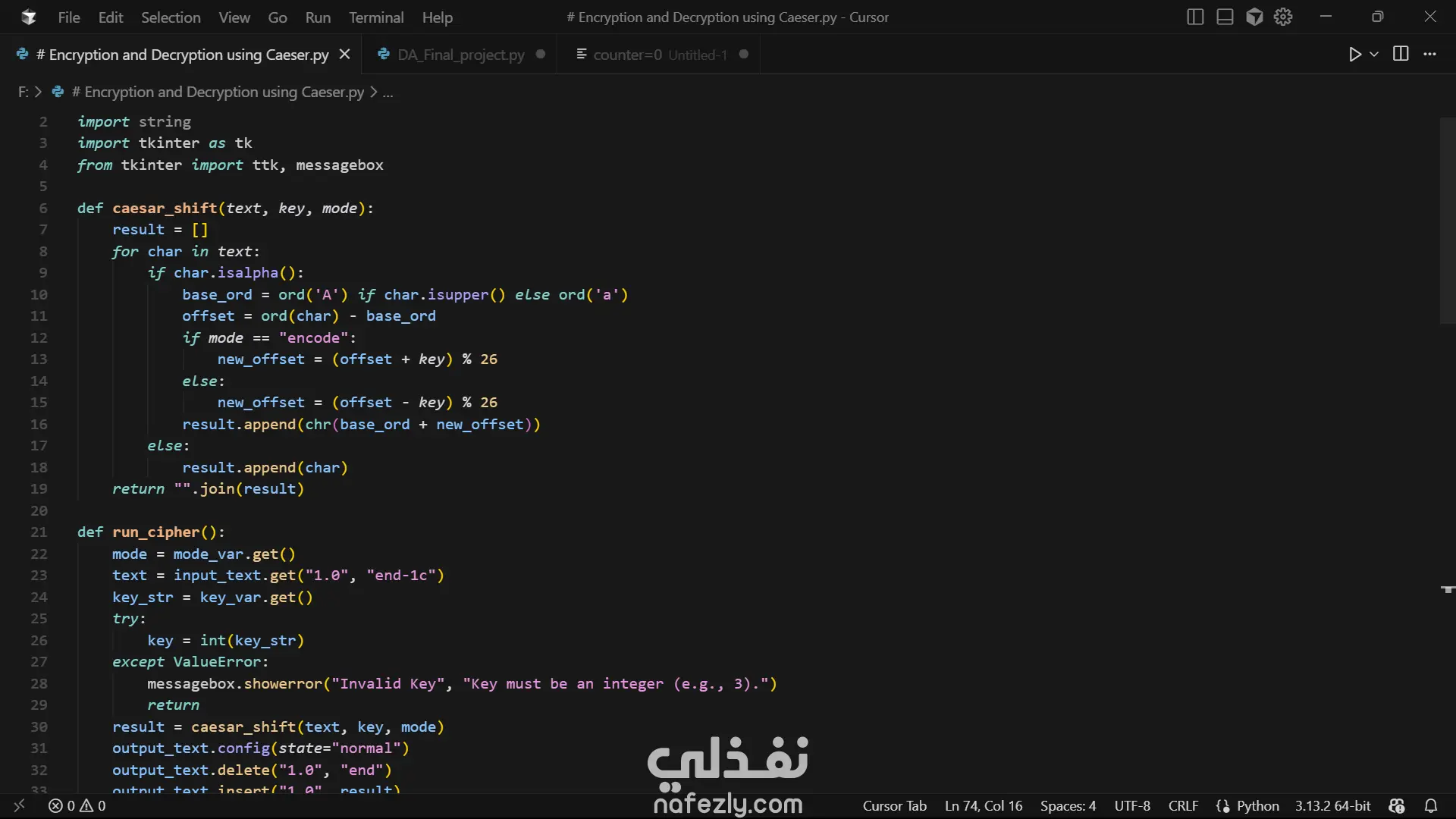 تشفير وفك تشفير الكلمات والرموز باستخدام ceaser cipher