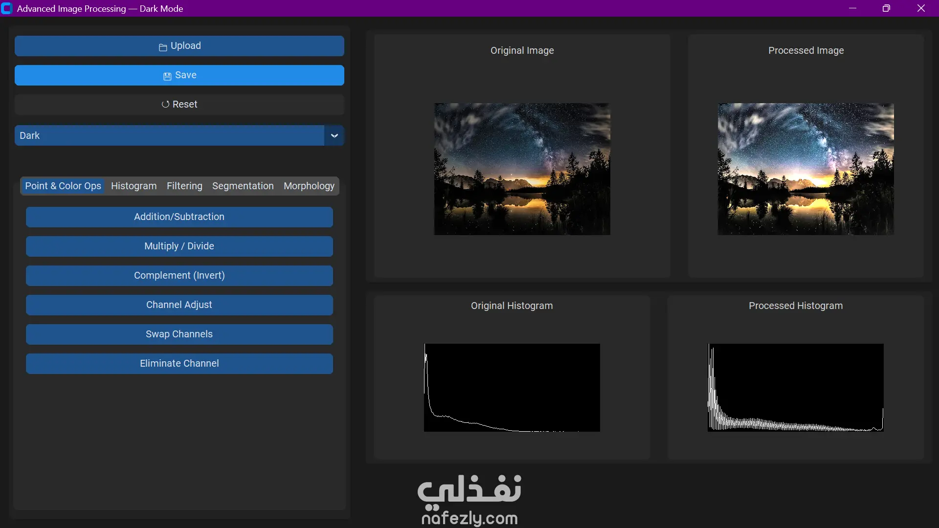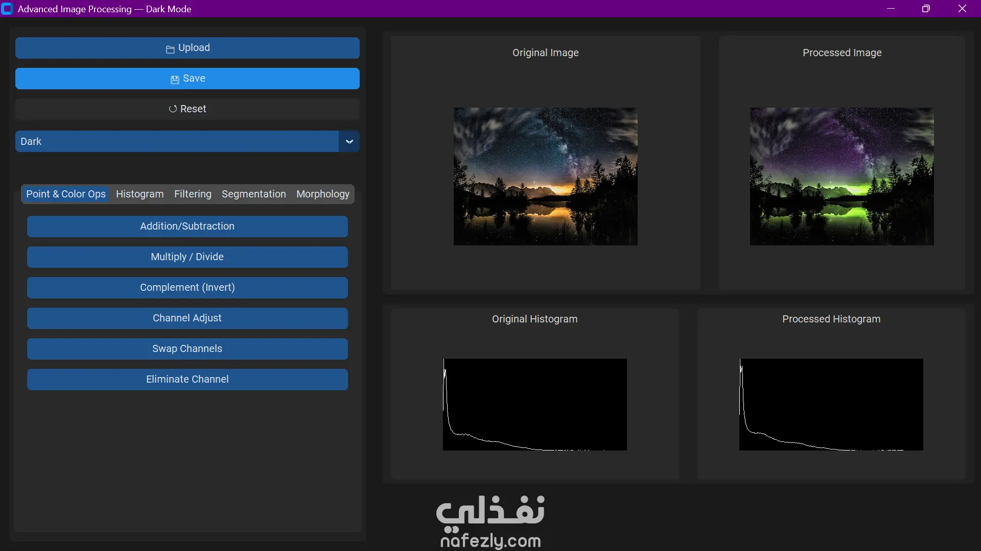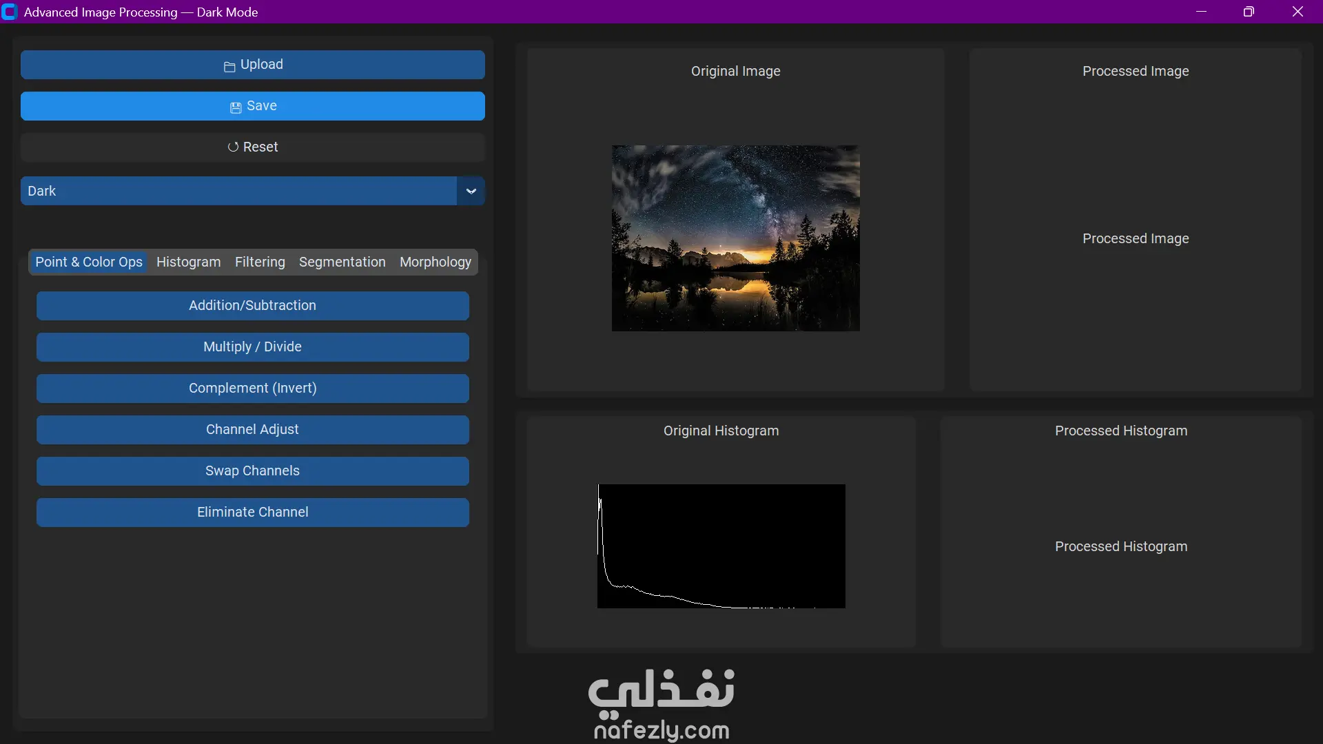 تطبيق عملي لمعالجة الصور بواجهة رسومية سهلة الاستخدام يتيح للمستخدم رفع الصور وتجربة عمليات مختلفة بشكل لحظي، منها: معالجة الألوان والنقاط (Addition, Subtraction, Inversion, Channel manipulation). الهستوجرام (Stretching, Equalization, Color Histograms). الضوضاء والفلاتر (Gaussian & Salt-and-Pepper Noise, Mean/Median/Mode Filters). الكشف عن الحواف والتجزئة (Sobel, Global/Otsu/Adaptive Thresholding). العمليات المورفولوجية (Dilation, Erosion, Opening, Closing, Gradient, Boundary Detection). 📌 مبني باستخدام: Python, OpenCV, NumPy, Pillow, CustomTkinter.