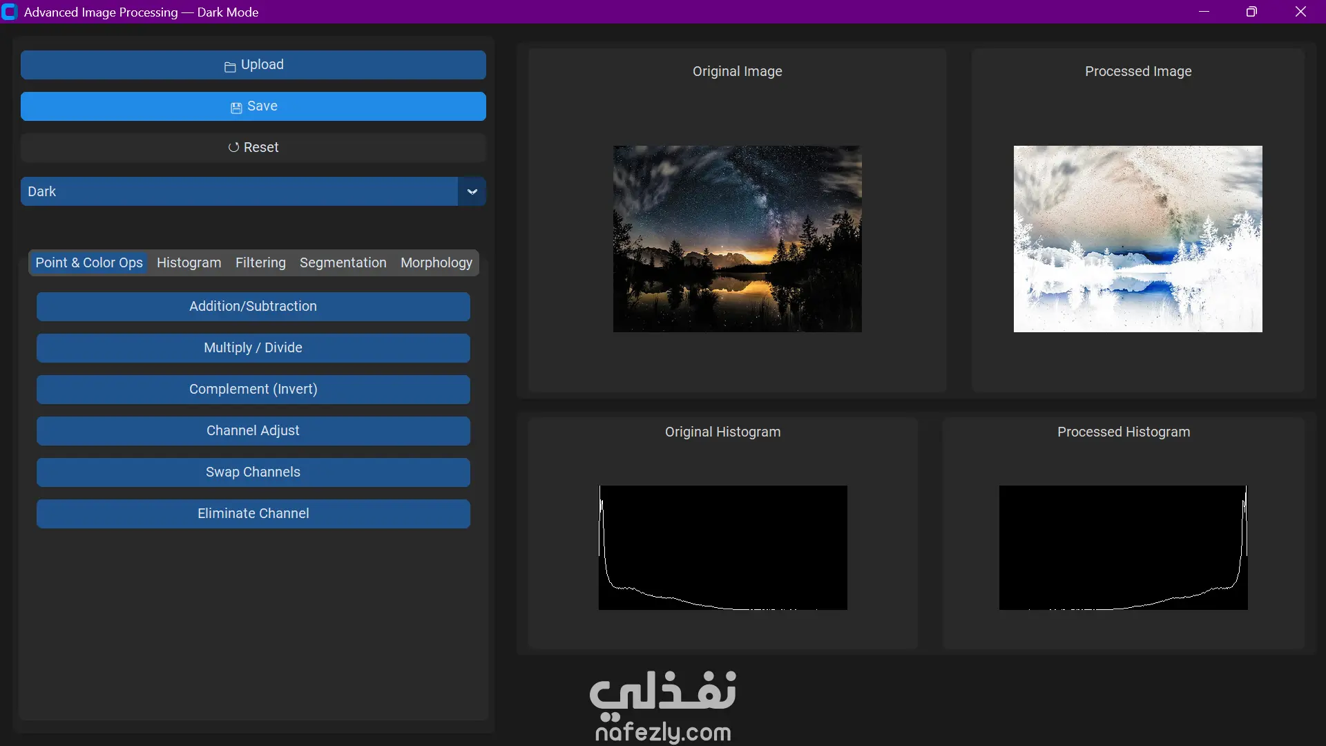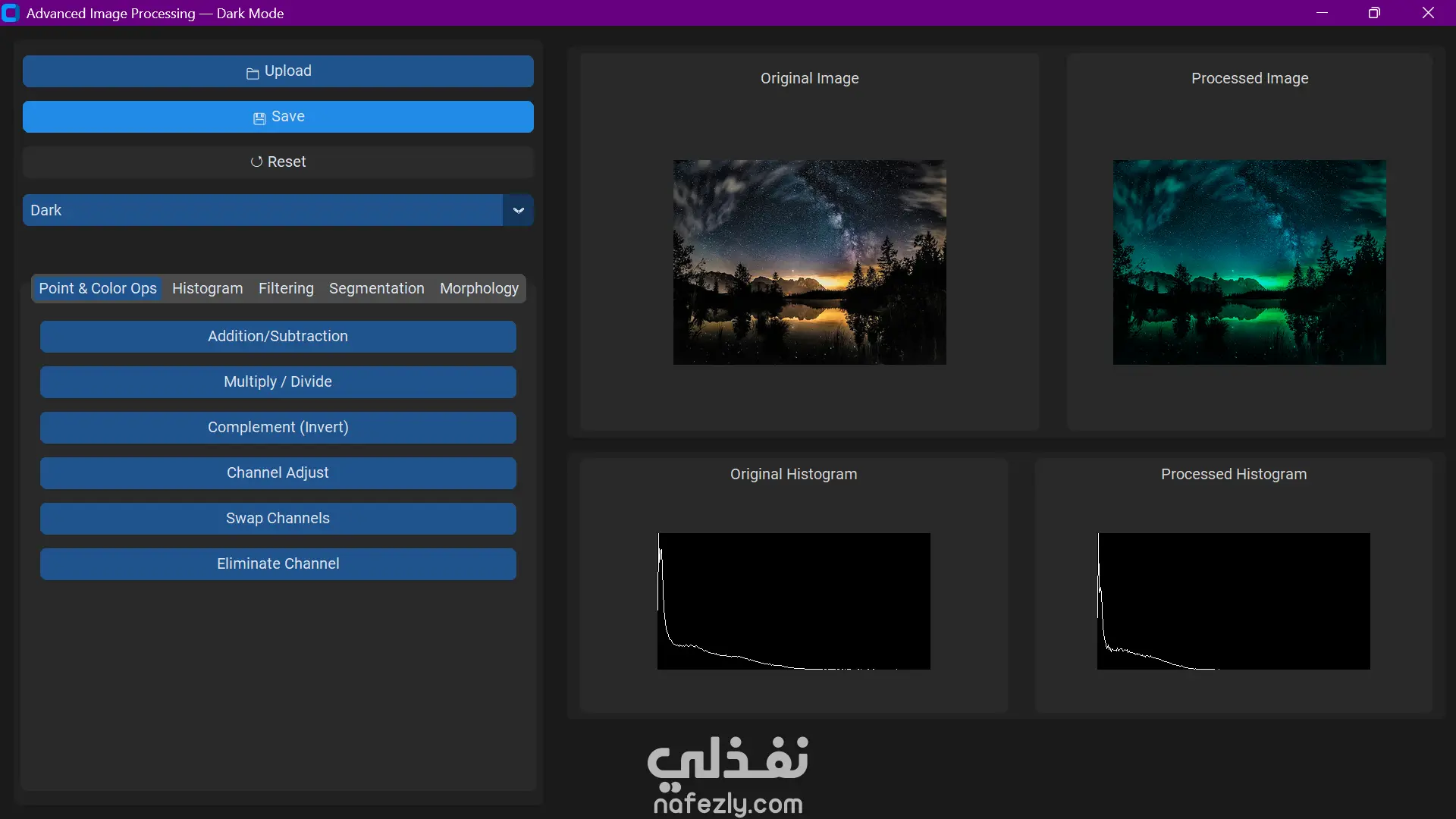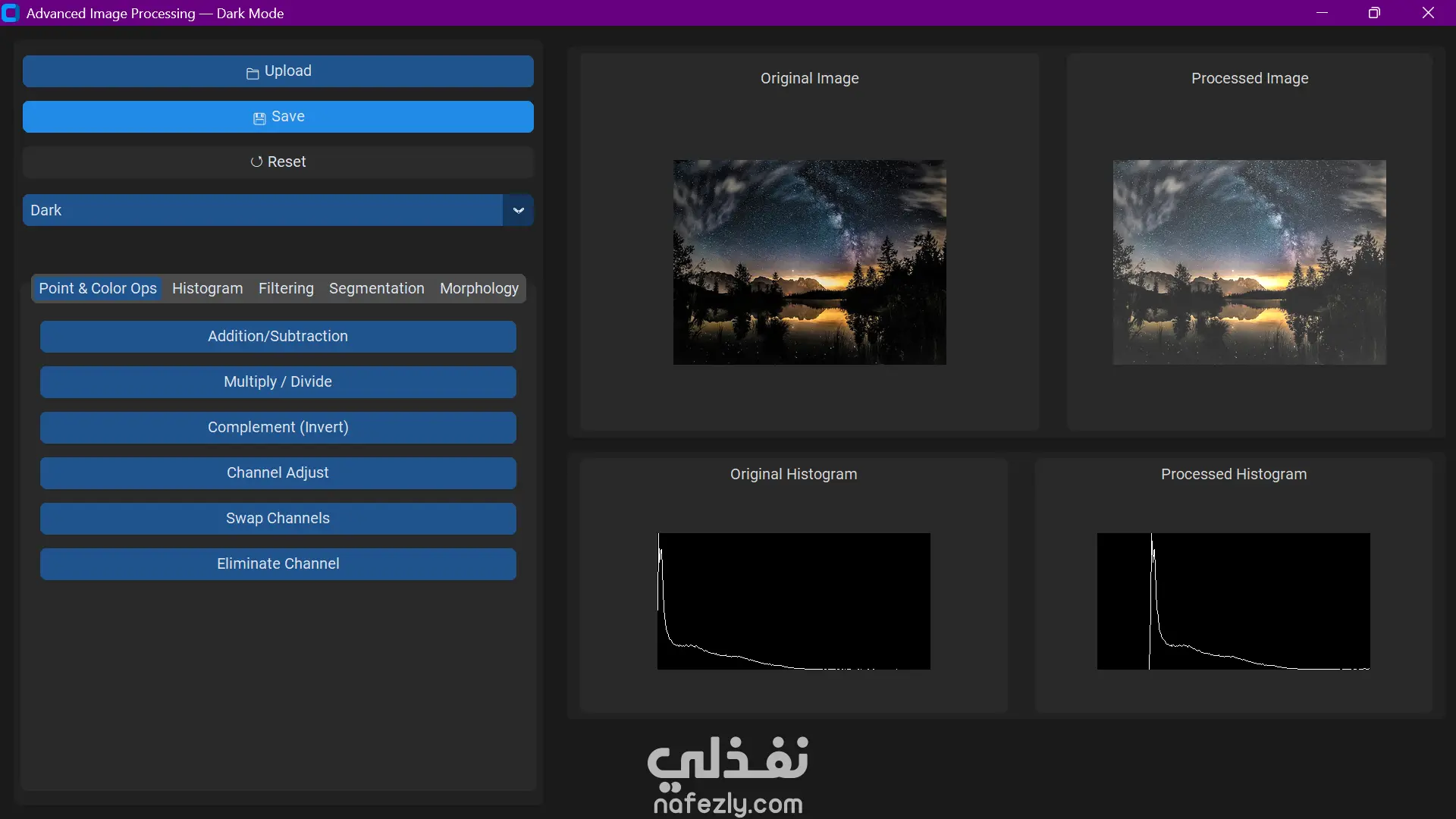 تطبيق عملي لمعالجة الصور بواجهة رسومية سهلة الاستخدام يتيح للمستخدم رفع الصور وتجربة عمليات مختلفة بشكل لحظي، منها: معالجة الألوان والنقاط (Addition, Subtraction, Inversion, Channel manipulation). الهستوجرام (Stretching, Equalization, Color Histograms). الضوضاء والفلاتر (Gaussian & Salt-and-Pepper Noise, Mean/Median/Mode Filters). الكشف عن الحواف والتجزئة (Sobel, Global/Otsu/Adaptive Thresholding). العمليات المورفولوجية (Dilation, Erosion, Opening, Closing, Gradient, Boundary Detection). 📌 مبني باستخدام: Python, OpenCV, NumPy, Pillow, CustomTkinter.