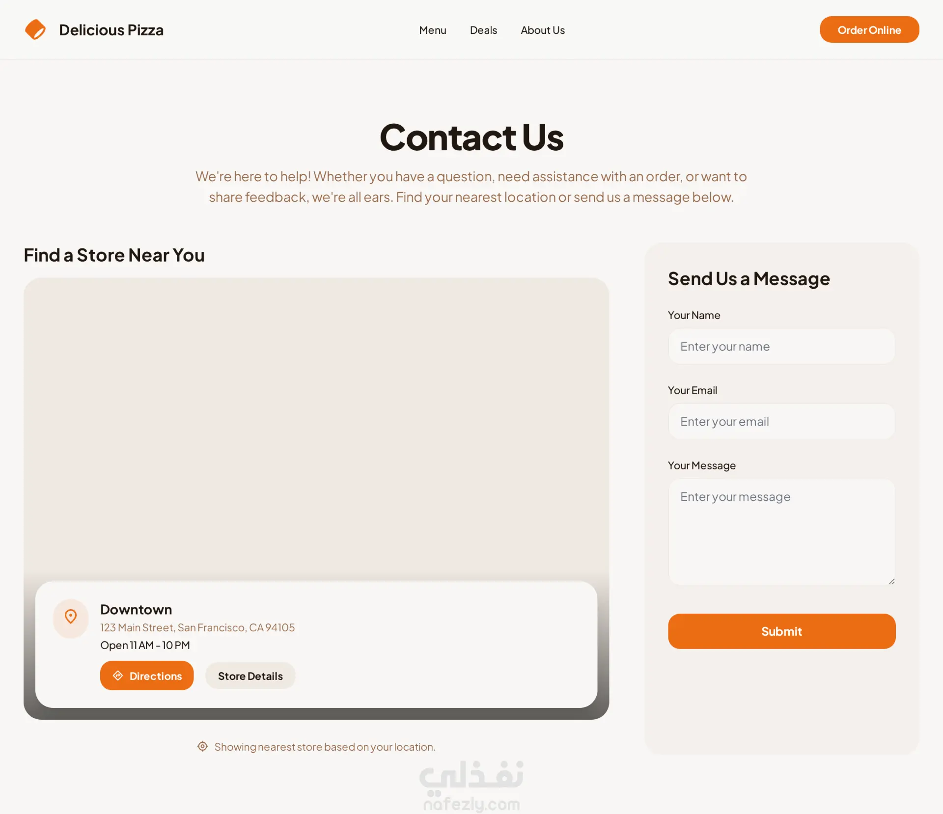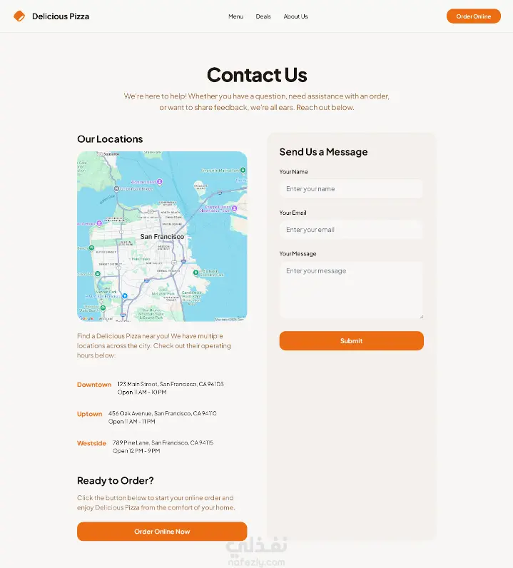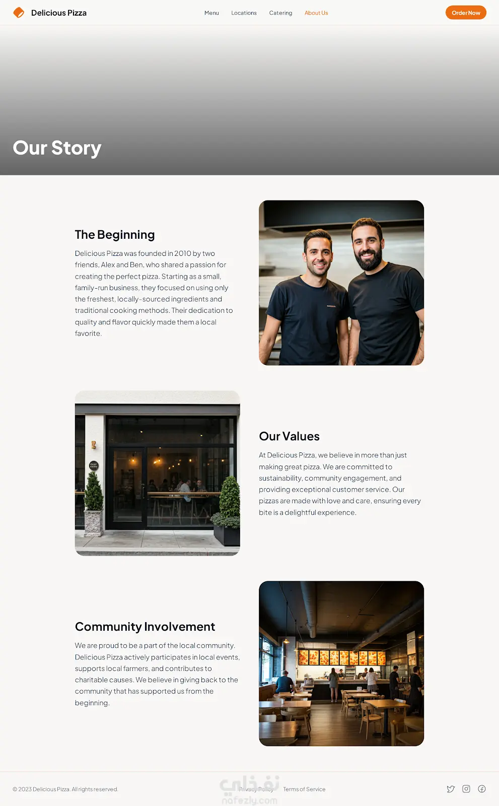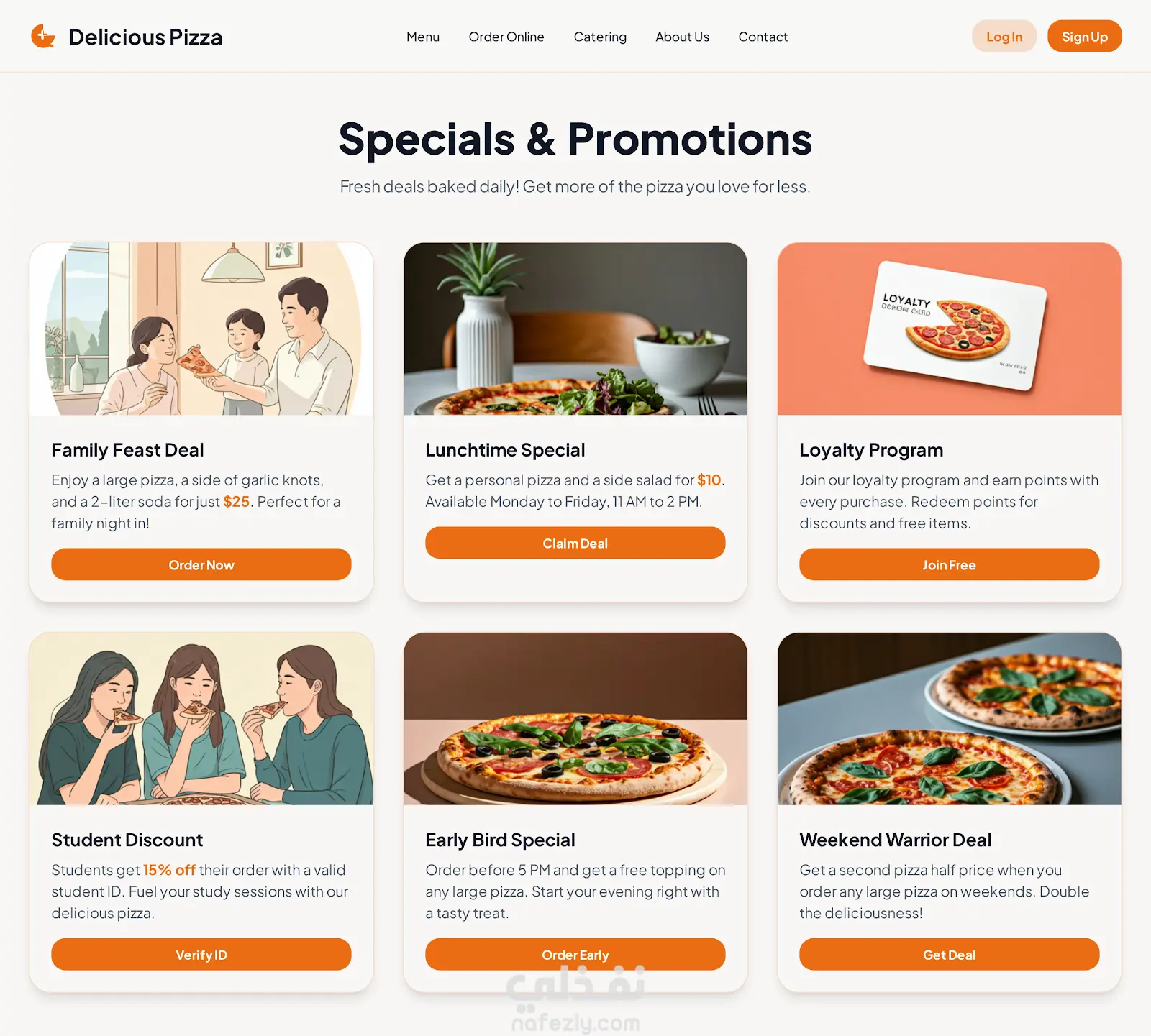 تصميم كامل ui UX لموقع مطعم بيتزا