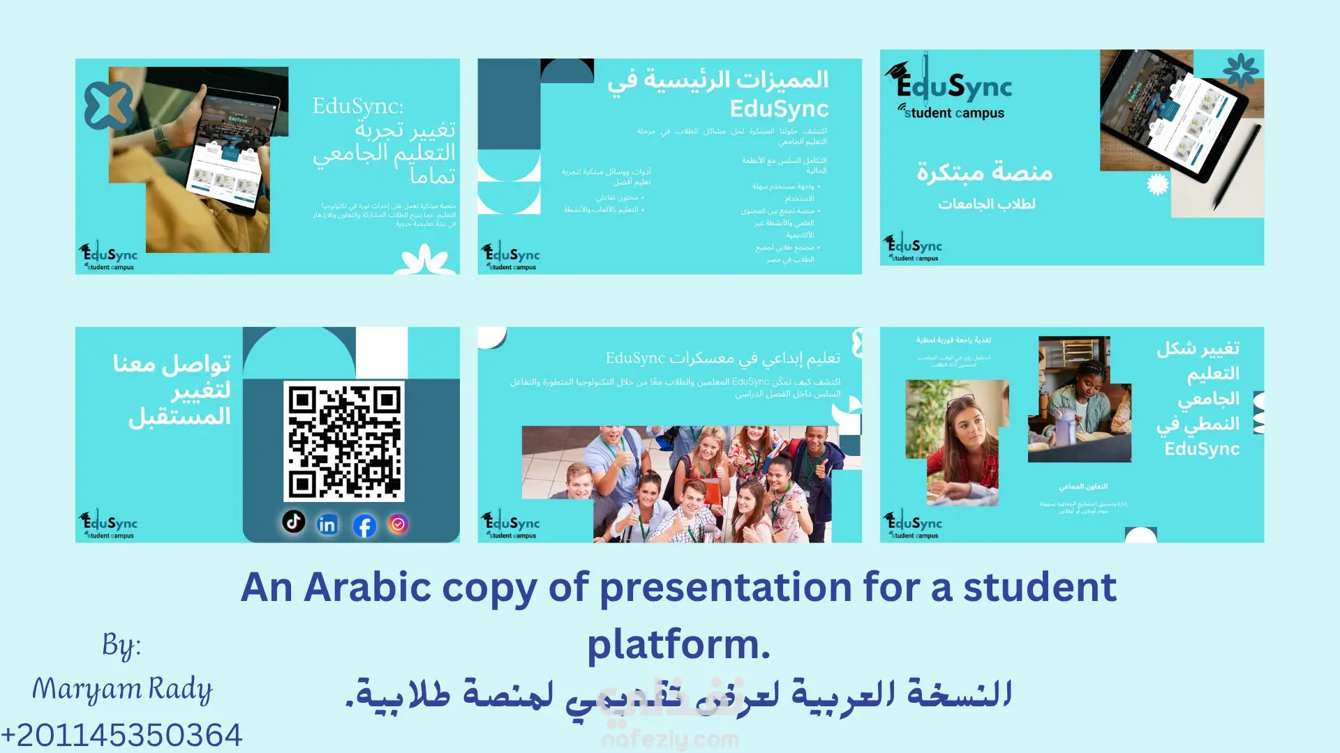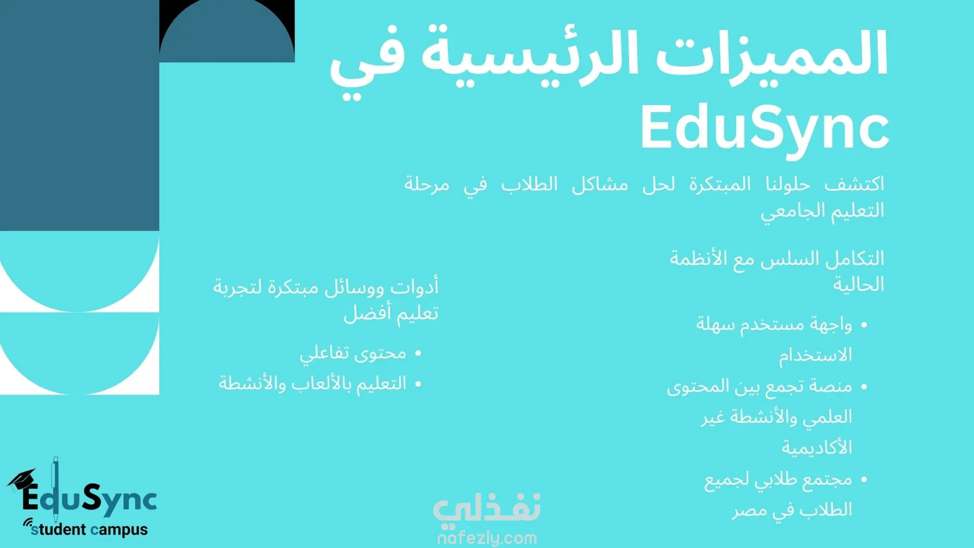 عرض تقديمي باللغة العربية لمنصة طلابية للتعليم الإلكتروني في مصر.