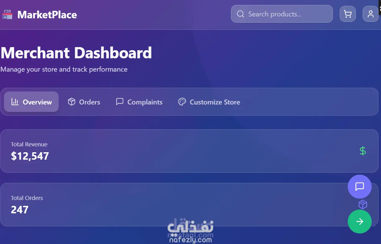 مشروع "ماركت بليس" هو منصة تجارة إلكترونية متعددة البائعين تربط بين المشترين والتجار عالميًا. الواجهة الرئيسية: تتيح للعملاء اكتشاف المنتجات، التصفية حسب الفئة، وعرض المتاجر المميزة. تحتوي صفحات منتجات واضحة مع صور، أسعار، تقييمات، وإمكانية الشراء. لوحة تحكم التجار: تقدم نظرة عامة على الأداء (الإيرادات، عدد الطلبات). إدارة الطلبات والشكاوى. خيارات لتخصيص المتجر (شعار، ألوان). الهدف إنشاء سوق إلكتروني متكامل يسهل التسوق للمشترين ويدعم نمو الأعمال للتجار.