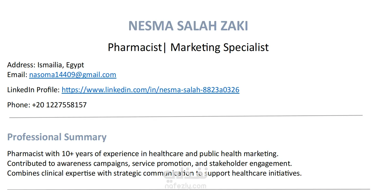قمت بتصميم وكتابة سيرة ذاتية احترافية تبرز الخبرات والمهارات بشكل منظم وجذاب، مع التركيز على تنسيق يعكس المهنية والوضوح. تم إعداد الـ CV بحيث يتناسب مع متطلبات سوق العمل ويعكس نقاط القوة بطريقة تسويقية تساعد على جذب أصحاب العمل.
