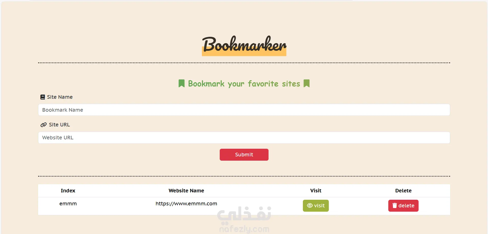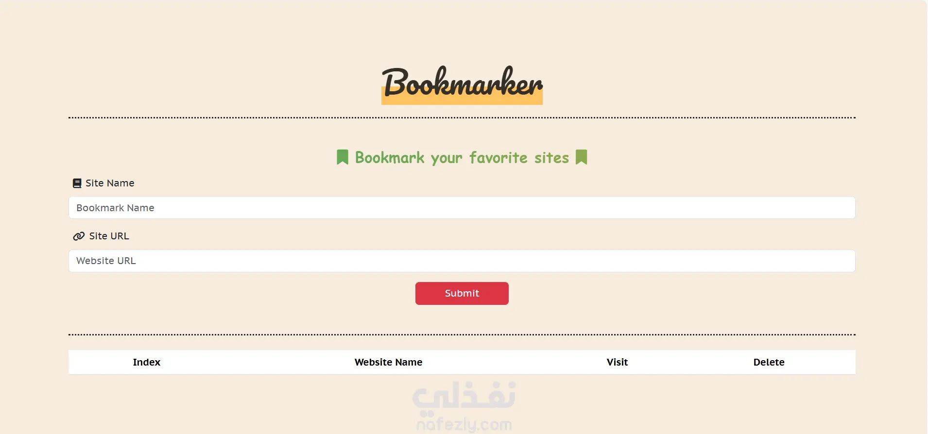 (واجهة تطبيق إدارة العلامات المرجعية)Bookmark App Interface
