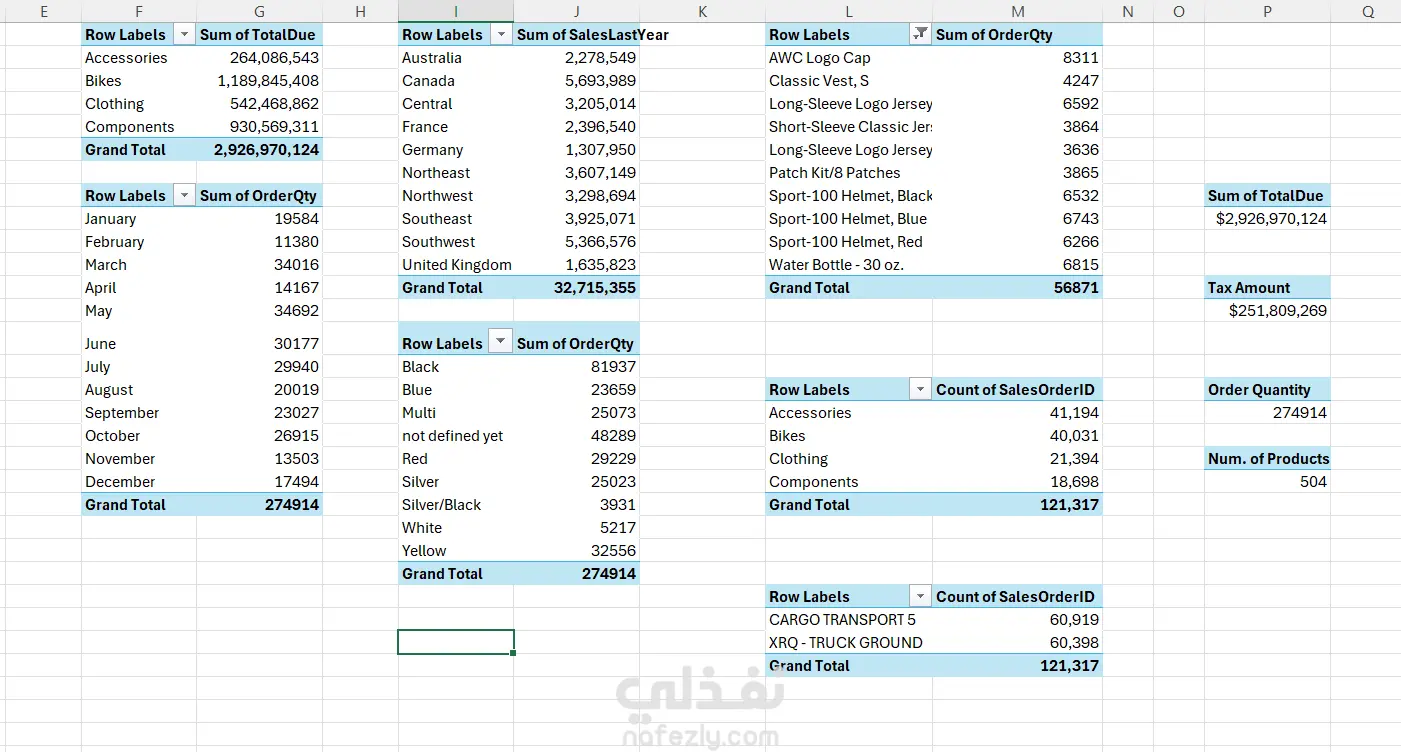Pivot Table + Slicers/Filters للتفاعل مع البيانات.