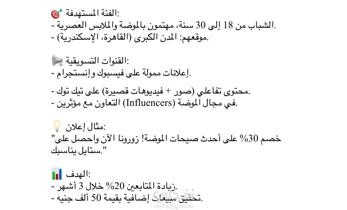 - التعاون مع مؤثرين (Influencers) في مجال الموضة.