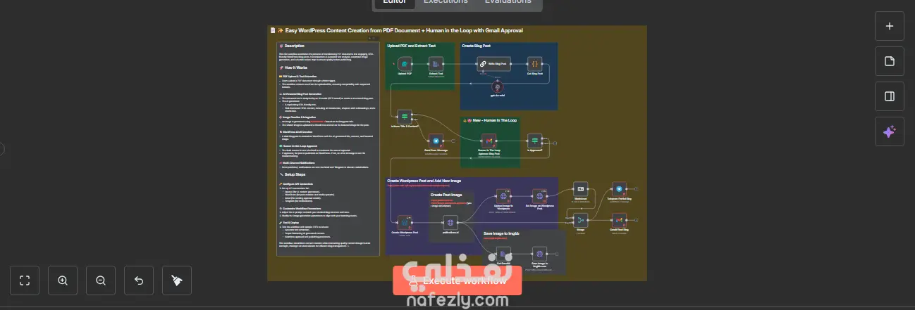 نظام عبارة عن تحويل محتوى ملفات PDF إلى مقالات منشورة على ووردبريس مع إمكانية مراجعة وتدخل بشري قبل النشر النهائي