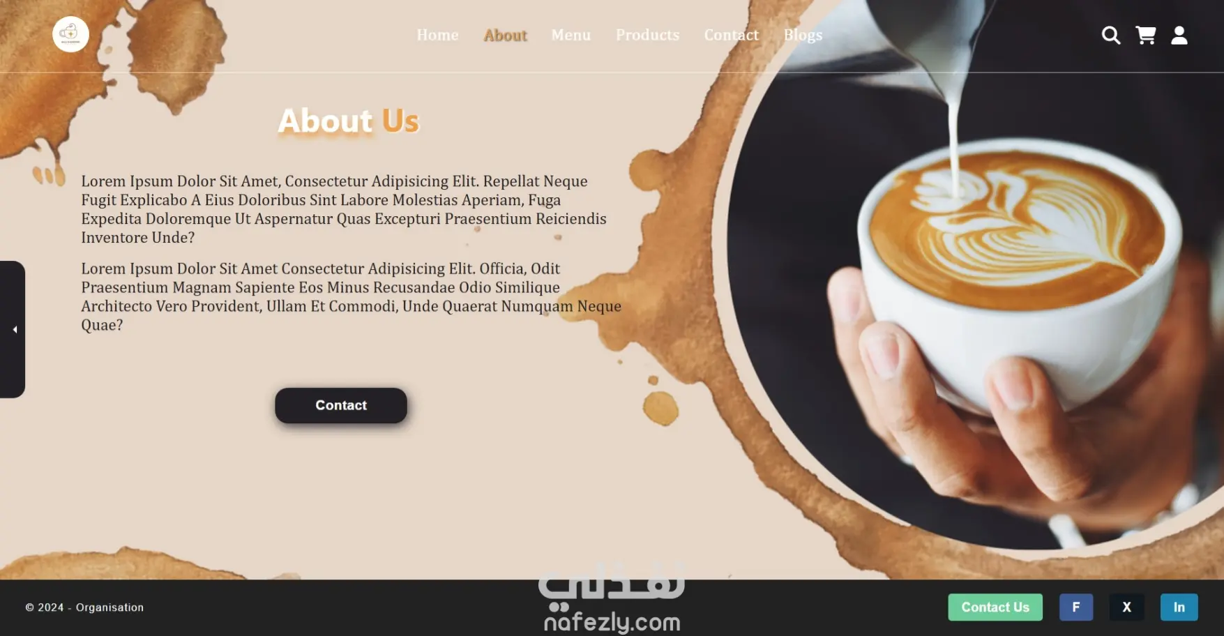 A front end website for a fictional coffee shop, created using HTML and CSS. It showcases responsive design, elegant layout, and interactive elements.