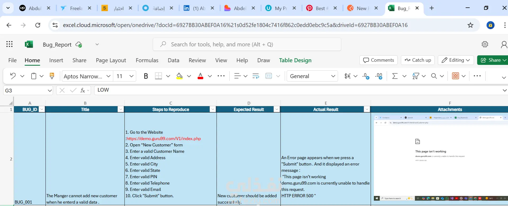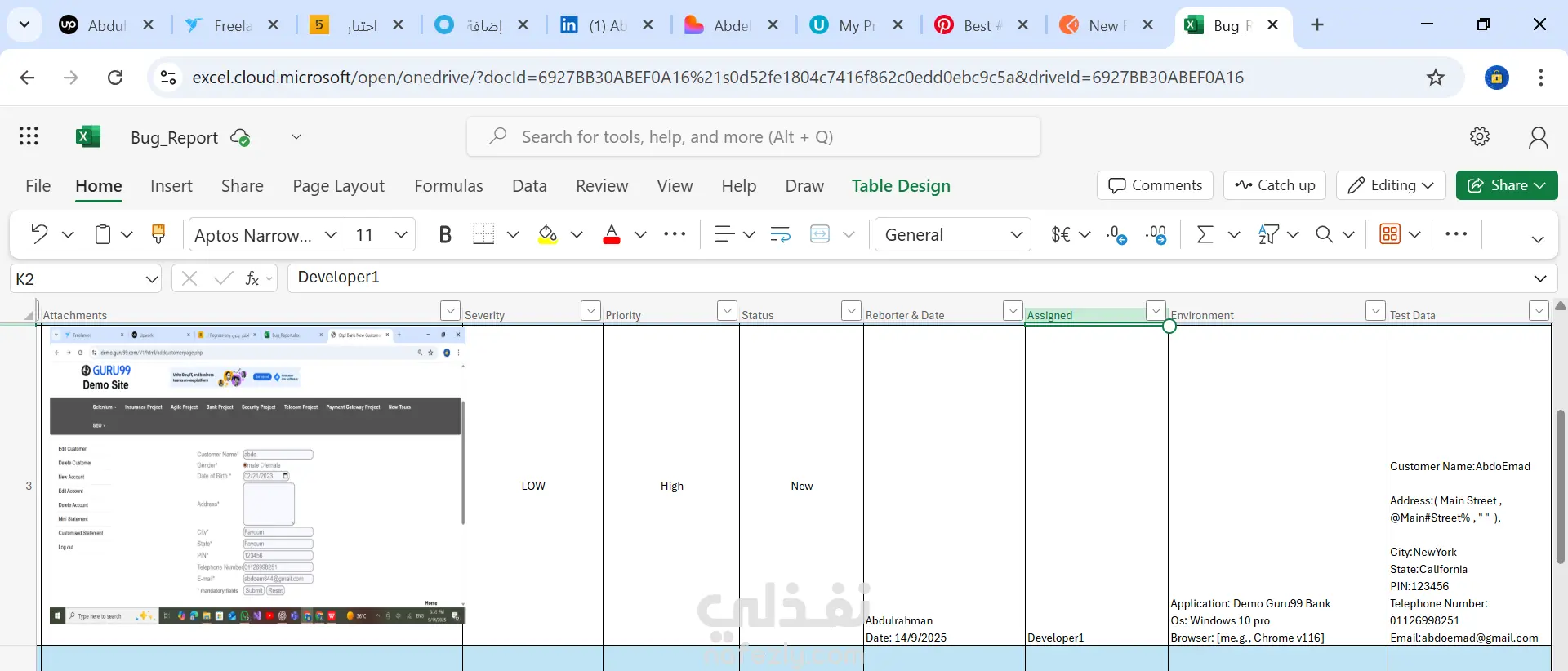 وصف الخدمة هل تتخيل زائر يدخل موقعك ويخرج بسبب مشكلة بسيطة؟ لا لا متتخيلش أومال أنا هنا وظيفتي اي !!! مرحبًا، أنا عبدالرحمن عماد مختص في الاختبار اليدوي (Manual Testing) بخبرة في كتابة Test Cases، إعداد Bug Reports احترافية، وتحليل Functionality / UI / UX للمواقع والتطبيقات. سأقوم بإعداد Test Cases منظمة لاختبار كل جزء من الصفحة والتأكد من عمله بالشكل المطلوب، كما سأقوم بتوثيق النتائج في Bug Report احترافي يوضح جميع المشاكل المكتشفة مع تحديد الأولوية (Severity & Priority) واقتراح حلول عملية للتحسين. اختبار Functionality للتأكد من أن جميع الوظائف تعمل بشكل صحيح بدون أخطاء. تجربة المستخدم (UI/UX): تقييم سهولة الاستخدام، جاذبية التصميم، وتجربة المستخدم على مختلف الأجهزة.ة. اختبار التوافق مع مختلف المتصفحات وأحجام الشاشات (Responsive Testing). كما أمتلك خبرة في استخدام Jira لتوثيق الأخطاء (Defect Tracking) وإدارة عملية المتابعة مع فريق التطوير، بحيث تحصل على تقرير منظم يسهل التعامل معه. مميزات الخدمة ما الذي ستحصل عليه عند طلبك للخدمة ان شاء الله: إعداد Test Cases منظمة تغطي جميع السيناريوهات الأساسية. تسليم Bug Report مفصل واحترافي مع تحديد الأولوية (Severity & Priority) وخطوات إعادة الإنتاج. مراجعة UI/UX باحترافية مع ملاحظات عملية لتحسين تجربة المستخدم. اختبار التوافقية (Responsive & Cross-browser Testing) على مختلف الأجهزة والمتصفحات. خبرة في استخدام Jira لإدارة الأخطاء وضمان متابعة فعالة مع فرق التطوير. تقرير منسق وجاهز يمكن لفريقك العمل عليه مباشرة. خدمة مثالية لأصحاب المواقع والتطبيقات الباحثين عن الجودة العالية قبل الإطلاق أو أثناء التطوير. حجم الخدمة: يشمل اختبار صفحتين من موقعك أو تطبيقك (مثل: صفحة تسجيل الدخول – صفحة التسجيل – الصفحة الرئيسية)، مع تسليم تقارير تفصيلية تحتوي على الملاحظات والمشاكل البرمجية أو التصميمية المكتشفة.