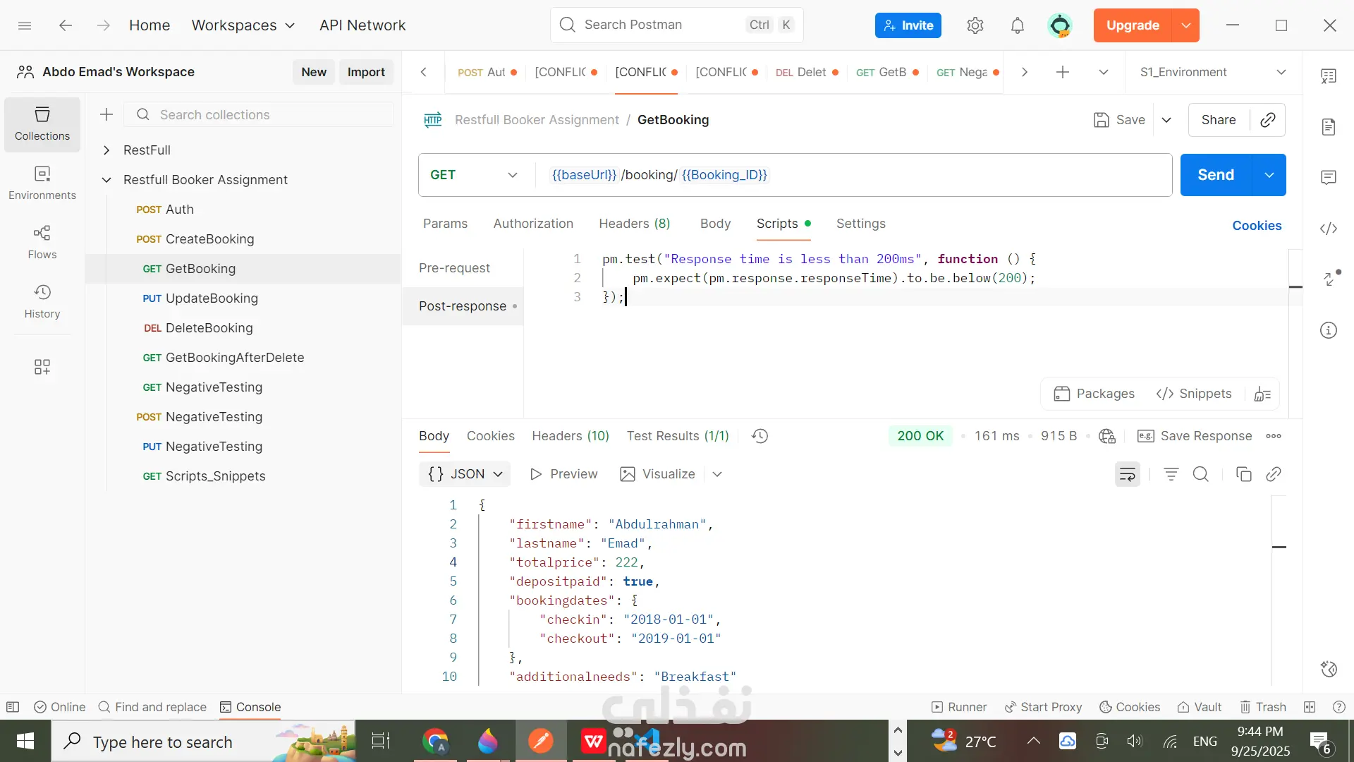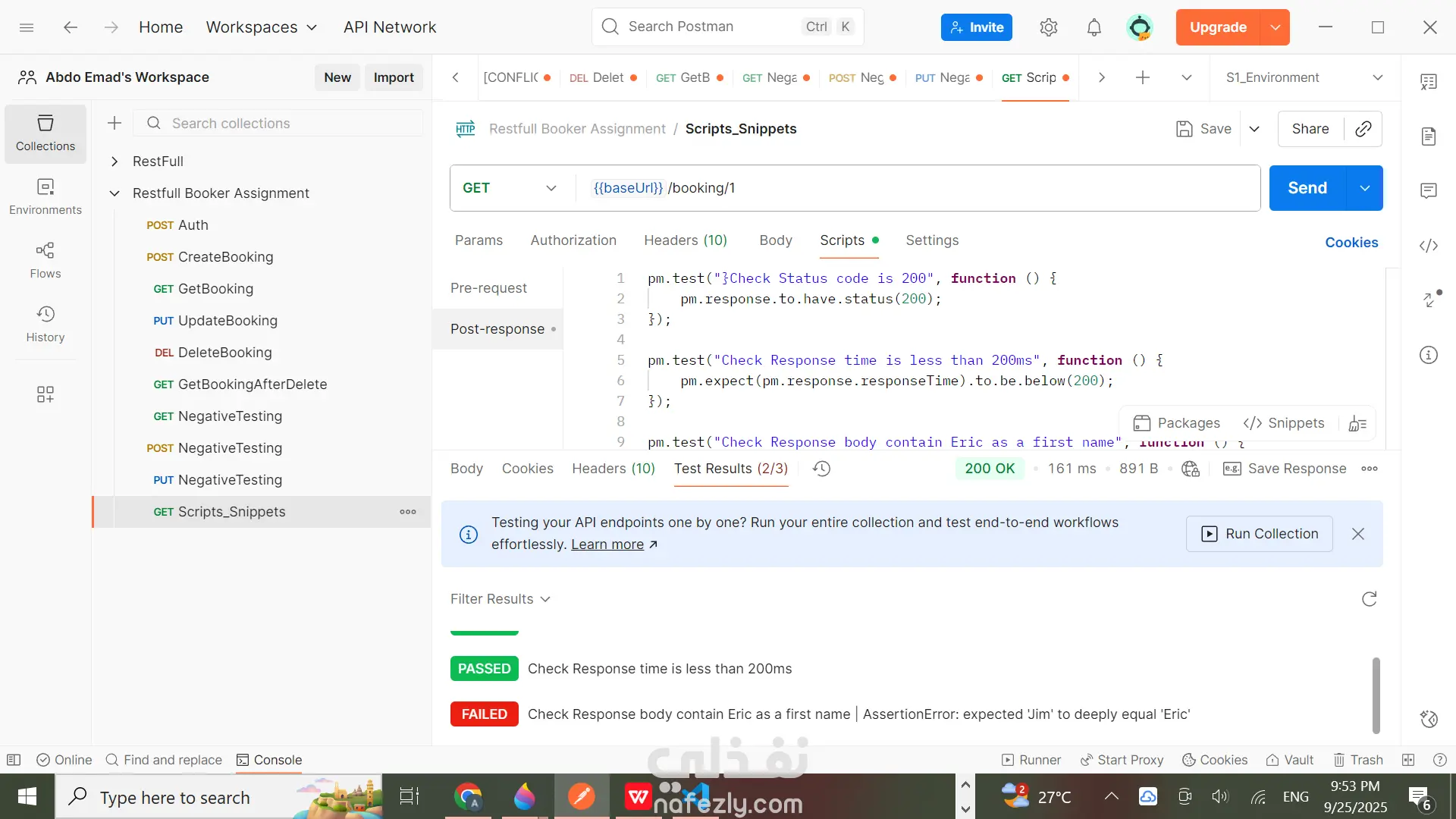 خدمة اختبار API وكتابة تقرير شامل باستخدام Postman