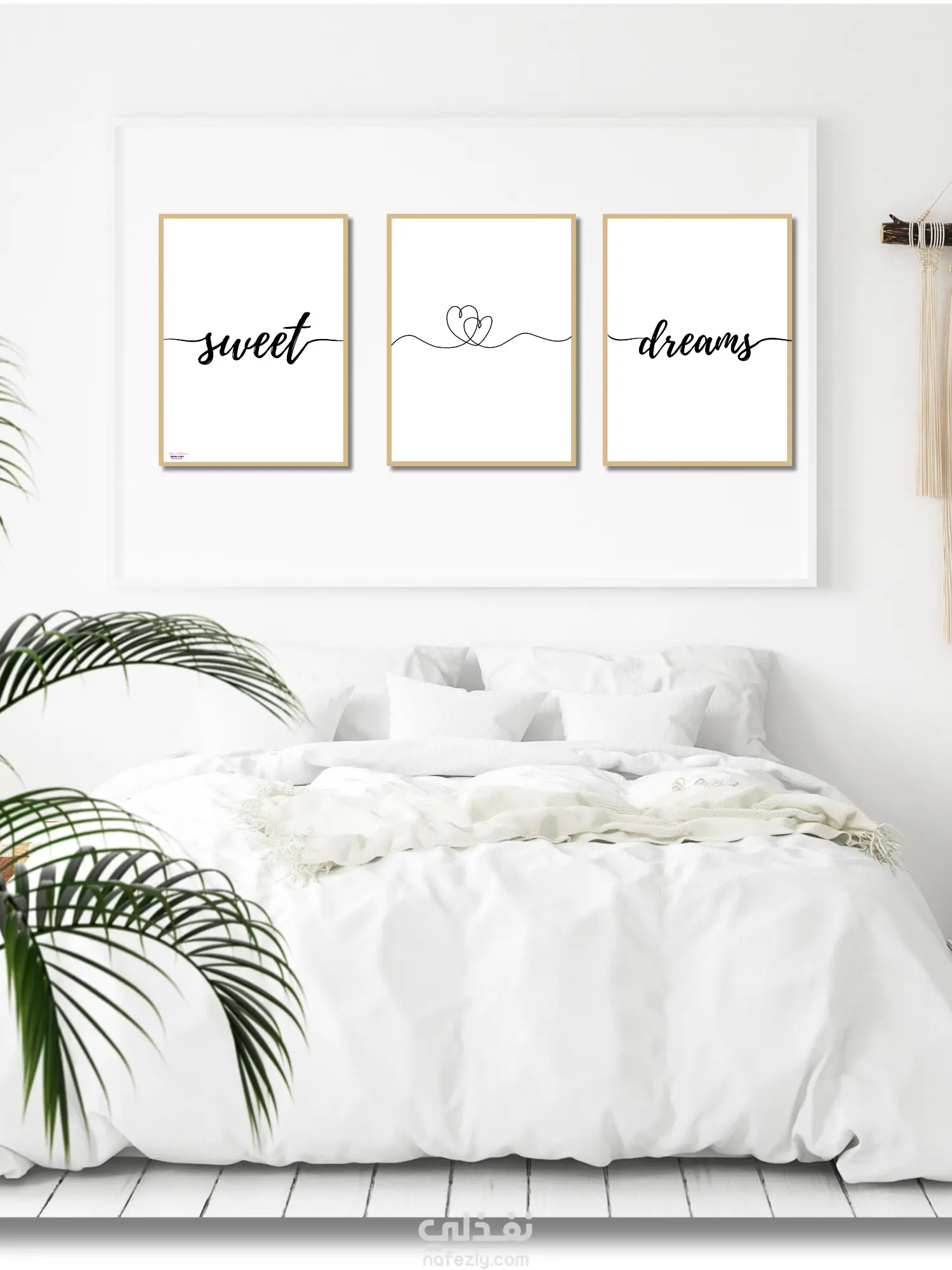 3 تابلوهات مقاس 30x 40 (sweet dreams) اطار بيج