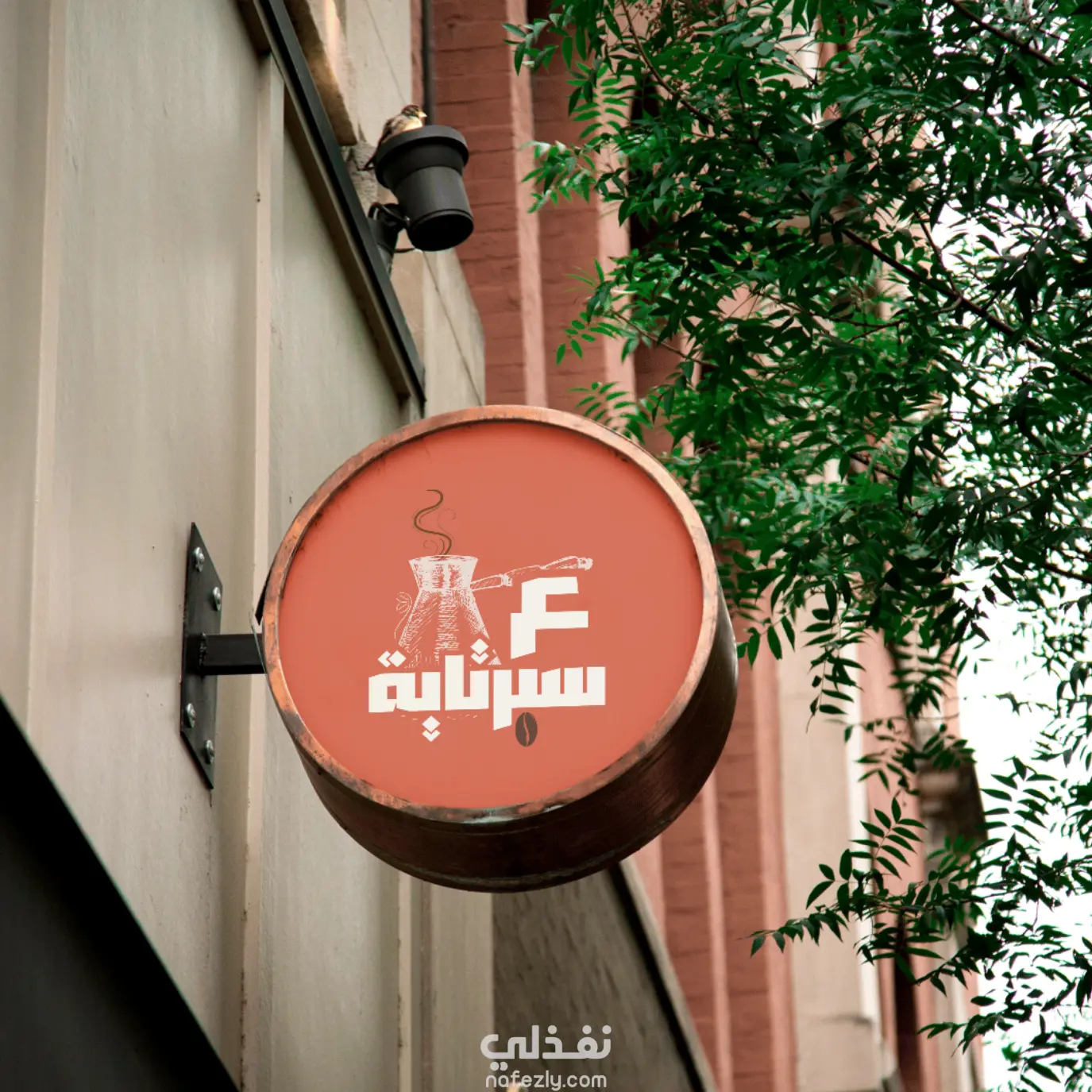 لوجو عربية مشروبات ( ع سبرتاية ) مع الوان الاورنج والبيج