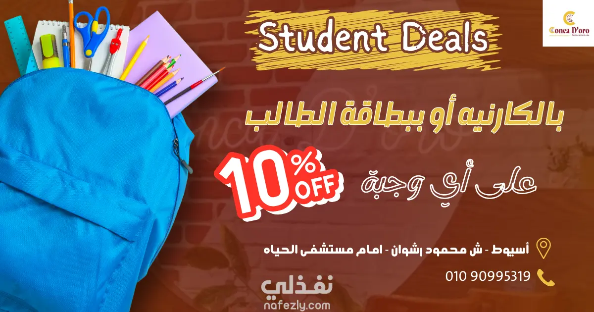 تصميمات سوشيال ميديا لمطعم كونكادور بمناسبة دخول المدارس يقدم عروض للطلبة المدارس والجامعات